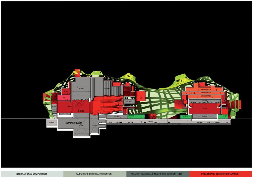 O escritório holandês OMA, liderado por Rem Koolhas e Ole Scheeren, venceu o concurso internacional para o Centro de Artes Performáticas de Taipei. O concurso foi realizado em duas fases. Entre os finalistas estavam Morphosis, MVRDV e Zaha Hadid.