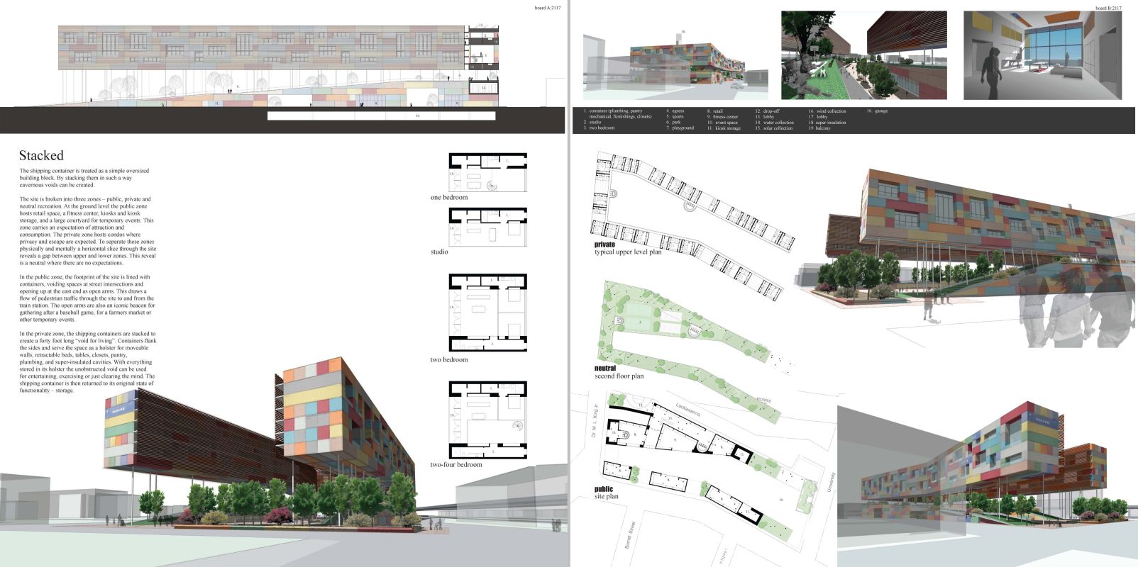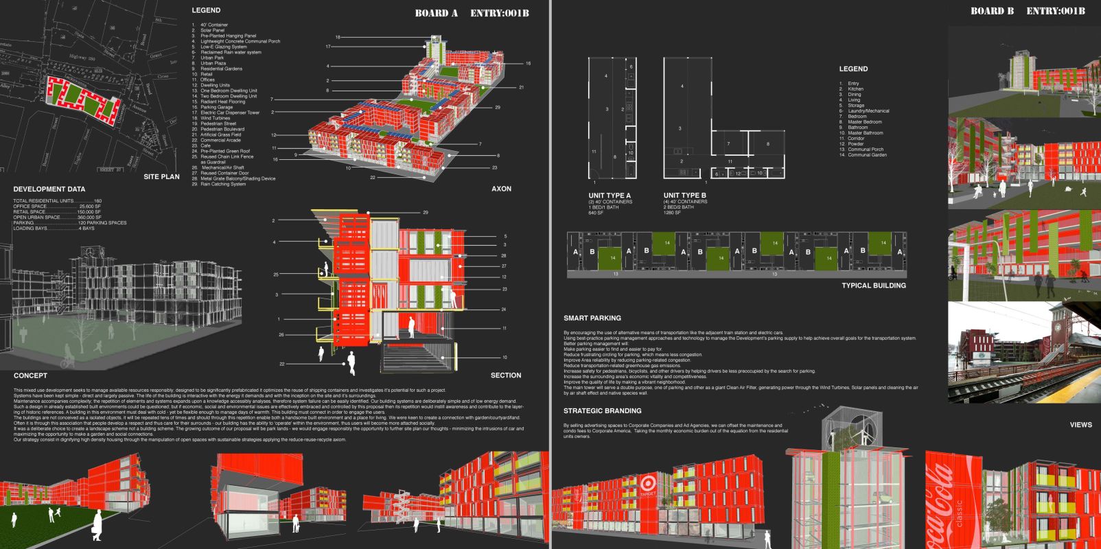 O American Institute of Architects (AIA) realizou concurso internacional que tinha como objetivo o desenvolvimento de projetos de residência multifamiliar a partir da utilização de containers de navios. O terreno selecionado para o concurso se situa na cidade de Newark (New Jersey, Estados Unidos).