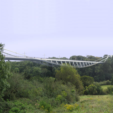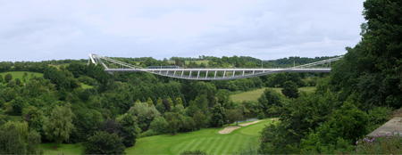 A mesma equipe de arquitetos e engenheiros também venceu concurso para uma ponte de pedestres na Irlanda, em que desenvolveram conceito semelhante de suspensão e mínimo impacto visual. Trata-se do projeto da River Soar Bridge.