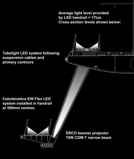 “A idéia é que tanto os passageiros quanto os pedestres que circulam sobre a ponte tenham uma visão livre da paisagem, com guarda-corpos seguros e ao mesmo tempo desenhados a partir de elementos horizontais discretos, com o mínimo de obstrução visual.”
