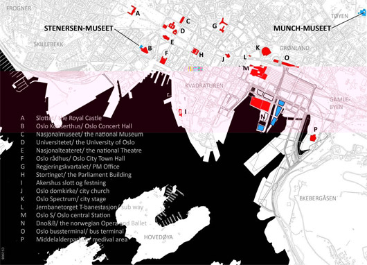O concurso para o Munch Museum faz parte desse contexto. A área objeto do concurso é próxima à Ópera de Oslo (edifício que foi uma referência importante para o concurso do museu, segundo relato da comissão julgadora), à Estação Central de Oslo e a vias de circulação expressa e elementos de infra-estrutura que devem ser revistos, segundo o referido Plano Urbanístico.