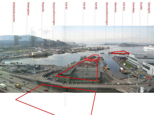 Uma das áreas da cidade que tem refletido bem esse processo de mudança é a região conhecida como Bjorvika, situada na interseção entre a Estação Central de Oslo e o centro comercial, uma região que tem atraído grandes investimentos (desde a década de 80) e tem sido objeto de planos de desenvolvimento fundamentados em projetos urbanos e de arquitetura, em boa parte conduzidos por meio de concursos públicos de projeto.
