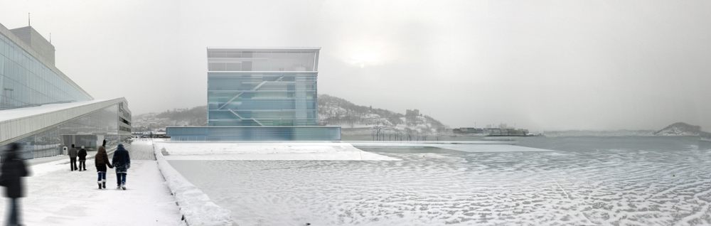 “O projeto nos convida, de forma generosa, não apenas ao Museu propriamente dito, mas ao espaço público da área em geral. A localização proposta para o museu permite que a área situada ao sul da Ópera de Oslo possa ser utilizada como um parque público e área de lazer; um espaço público bem integrado à Ópera e ao novo museu. O projeto reforça a relação com o rio e se abre à perspectiva da paisagem. (…) Ao orientar a entrada principal para a face norte, permite-se a ligação do edifício com o tecido urbano do centro da cidade. (…) Tanto a implantação quanto a forma da edificação fazem da proposta um elemento de destaque como exemplo de um museu belo e contemporâneo. A verticalidade do edifício entra em equilíbrio com a silhueta da Ópera, criando uma comunicação que mantém o mesmo nível de importância entre os dois edifícios. (…) O conceito do museu é flexível. Os espaços de exibição separados, com áreas conectadas por meio de elementos de circulação vertical generosos facilitam o gerenciamento e mudança das diferentes exposições e coleções do museu.(…) O projeto é leve e translúcido, em contraste com a ópera e deixa transparecer o movimento das pessoas na fachada, em contraste com o movimento das pessoas que caminham sobre a cobertura da Ópera. O projeto se afirma como um espaço público vertical, que se destaca da paisagem densa da área comercial situada ao norte. O edifício é elegante e se apresenta como um ícone, por sua simplicidade. “