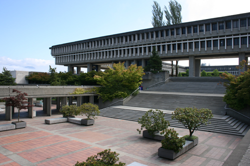 Simon Fraser University, Burnaby. Projeto de Arthur Erickson e Geoffrey Massey, premiado em concurso, realizado em 1963. Foto da autora.