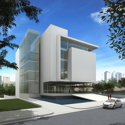 Para tanto optamos por desenhar um bloco único, definido através de operações geométricas de subtração, adição e translação de planos e volumes, tendo como resultado uma composição formal que propõe dialogo e harmonia com as edificações vizinhas e estabelece frontalidades com todo o entorno do lote.
