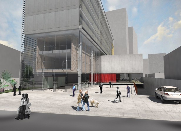 Estratégias projetuais. Uma entidade como o CREA_PR que, entre outras atribuições, atua na regulamentação, normatização e fiscalização profissional dos engenheiros, arquitetos e agrônomos, tem também a responsabilidade primordial de representar exemplarmente sua classe de profissionais. Nesse contexto, a constituição de sua sede deverá expressar valores essenciais que serão percebidos e interpretados por um grupo expressivo de pessoas, não apenas composto por funcionários internos, mas pela sociedade como um todo, que formulará uma imagem para a instituição. Sendo assim, idéias associadas à valores como modernidade, austeridade e transparência administrativa, além da necessária acessibilidade que a instituição deverá assegurar a todos que a ela recorrer, poderão encontrar uma tradução adequada por meio de certas estratégias de design, que deverão, inclusive, considerar novas demandas da sociedade no que diz respeito à preocupação ambiental. O projeto aqui apresentado procura valorizar, na medida do possível, a constituição de espaços amplos de uso público, integrados e flexíveis no uso. A adoção de superfícies envidraçadas e a redução de obstáculos à livre circulação de público, sobretudo no térreo e pavimento acima, destinados ao principal do programa – plenário, áreas de apoio e de atendimento – procura associar-se à idéia de transparência e acessibilidade. A austeridade, expressa por uma economia de recursos formais e na aplicação de materiais sóbrios e duráveis, não dispensa a arquitetura como expressão. Uma lâmina regular de vidro, entrecortada por um bloco cúbico de concreto reduz a forma a elementos essenciais e fortes.