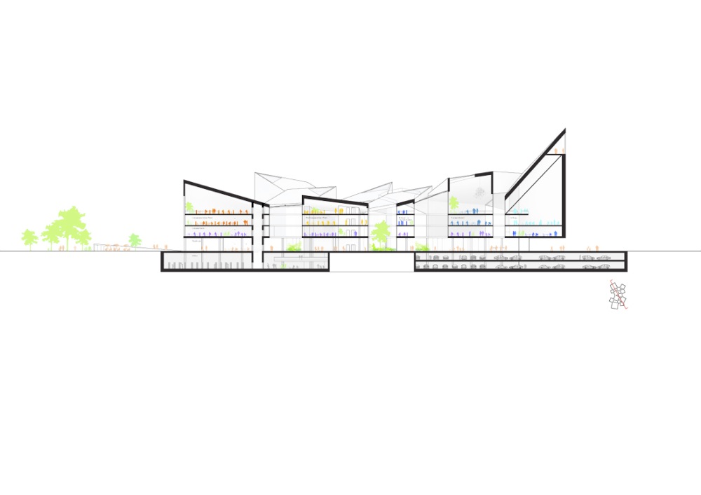 Ainda segundo os autores, “o novo centro administrativo vai oferecer transparência em duas direções: dos cidadãos em relação à estrutura política e administrativa, e vice-versa. Os vários departamentos foram concebidos a partir desse conceito de transparência: os servidores públicos não tomarão suas decisões por trás de paredes espessas e opacas, mas serão visíveis em seu trabalho diário, por todos os cidadãos e circulam na praça pública. Ao mesmo tempo, os servidores públicos poderão olhar para o exterior, para a praça pública, e sempre terão a cidade e os cidadãos em vista e em mente.”