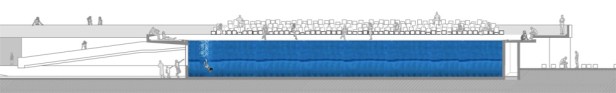 Bastante primário utilizar a água como elemento principal de um parque aquático, o que não significa ser óbvio. Conceito simples que me parece dar certo. Gostei da implantação e composições, mas tenho a impressão de que os espectadores não foram muito beneficiados nesta proposta. Eu não gostaria de assistir a uma competição sentada na “arquibancada” que aparece na 3a imagem. Imagino que os Jogos Sulamericanos (conforme correção acima), atraiam um público numericamente considerável, que demande espaços mais adequados.