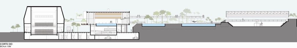 ECO-CONSTRUÇÃO: levou-se em consideração a relação do edifício com seu entorno, seja pela criação de espaços públicos generosos e abertos, seja pela concepção de um edifício que mitigasse o grande porte através de sua permeabilidade visual, altura reduzida e fragmentação do programa. Além disso, a escolha de produtos, sistemas e processos construtivos levou em consideração baixa interferência no terreno e no entorno, materiais locais, com forte conexão cultural e disponibilidade de mão-de-obra, como concreto armado e painéis de placas cerâmicas.