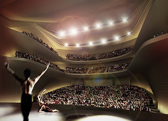 Ainda segundo os arquitetos, outros elementos que se destacam no conceito do projeto são as soluções acústicas e a proximidade entre o público e o palco, daí a solução em forma de ferradura, considerada – segundo os autores – ideal para os espetáculos de balé e musicais, tanto para o público quanto para os artistas. Uma das obrigações seguidas pelo projeto é que o público – não importa onde estivesse sentado – deveriam ver os pés dos dançarinos, não importa onde estes estivessem posicionados no palco.