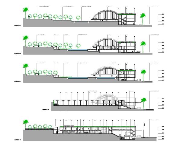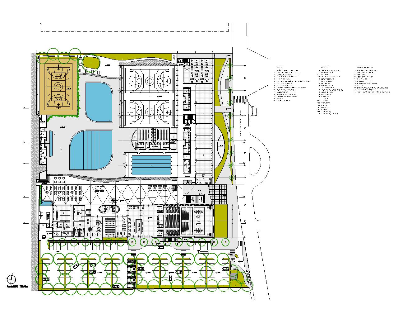 Nossa proposta para a nova unidade SESC em Guarulhos foi concebida, com o objetivo de implantar o projeto respeitando os patamares existentes do terreno, minimizando o movimento de terra, com a seguinte organização do programa: