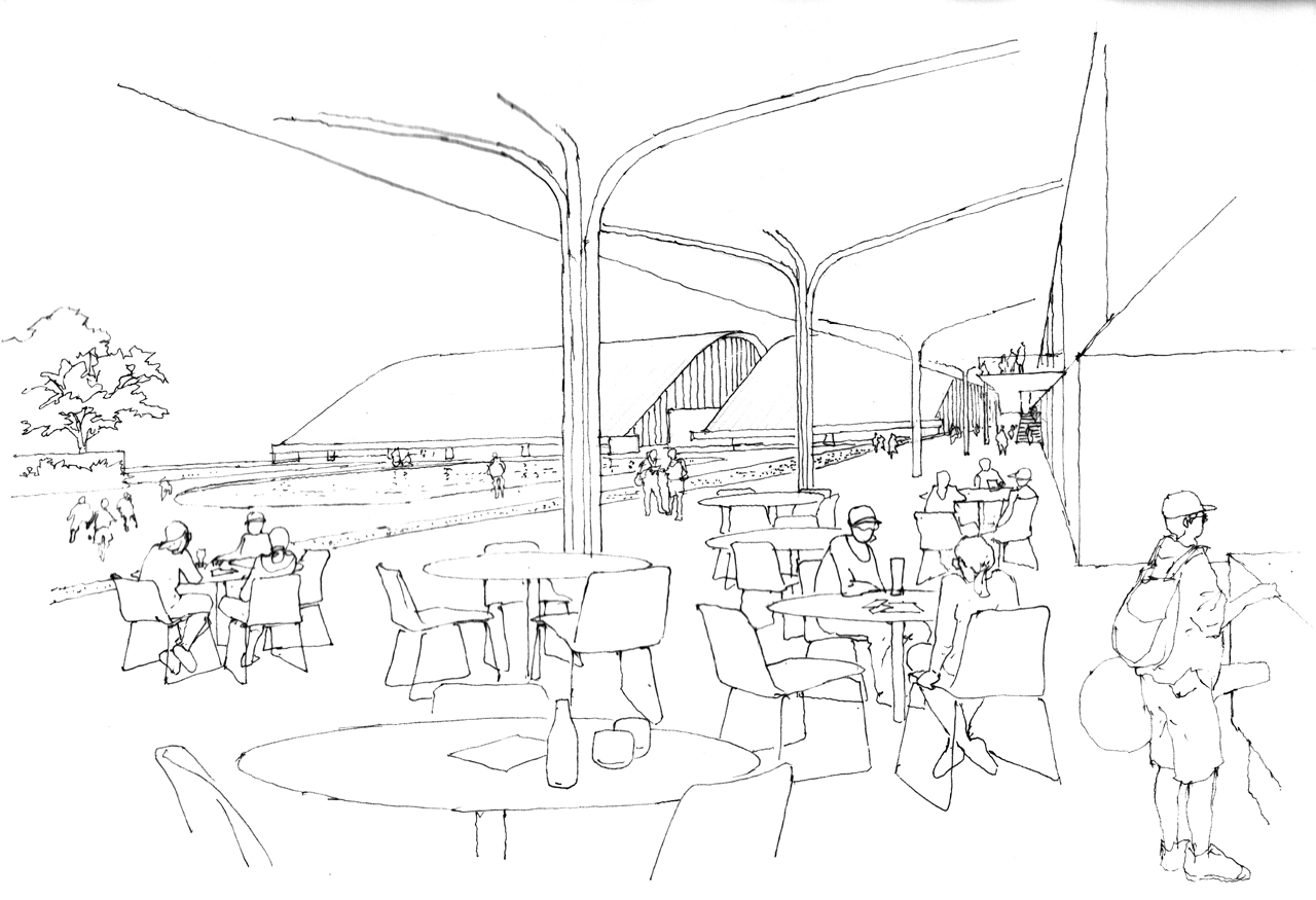 Articulados pela área de convivência encontram-se a cafeteria/espaço cultural, biblioteca, área infantil, cozinha experimental e o restaurante social de onde se pode visualizar todo o conjunto aquático externo. No pavimento superior, completando o programa do teatro, localiza-se a cabine de projeção e o centro de formação musical elementar, o que permite seu uso em conjunto para eventuais congressos.