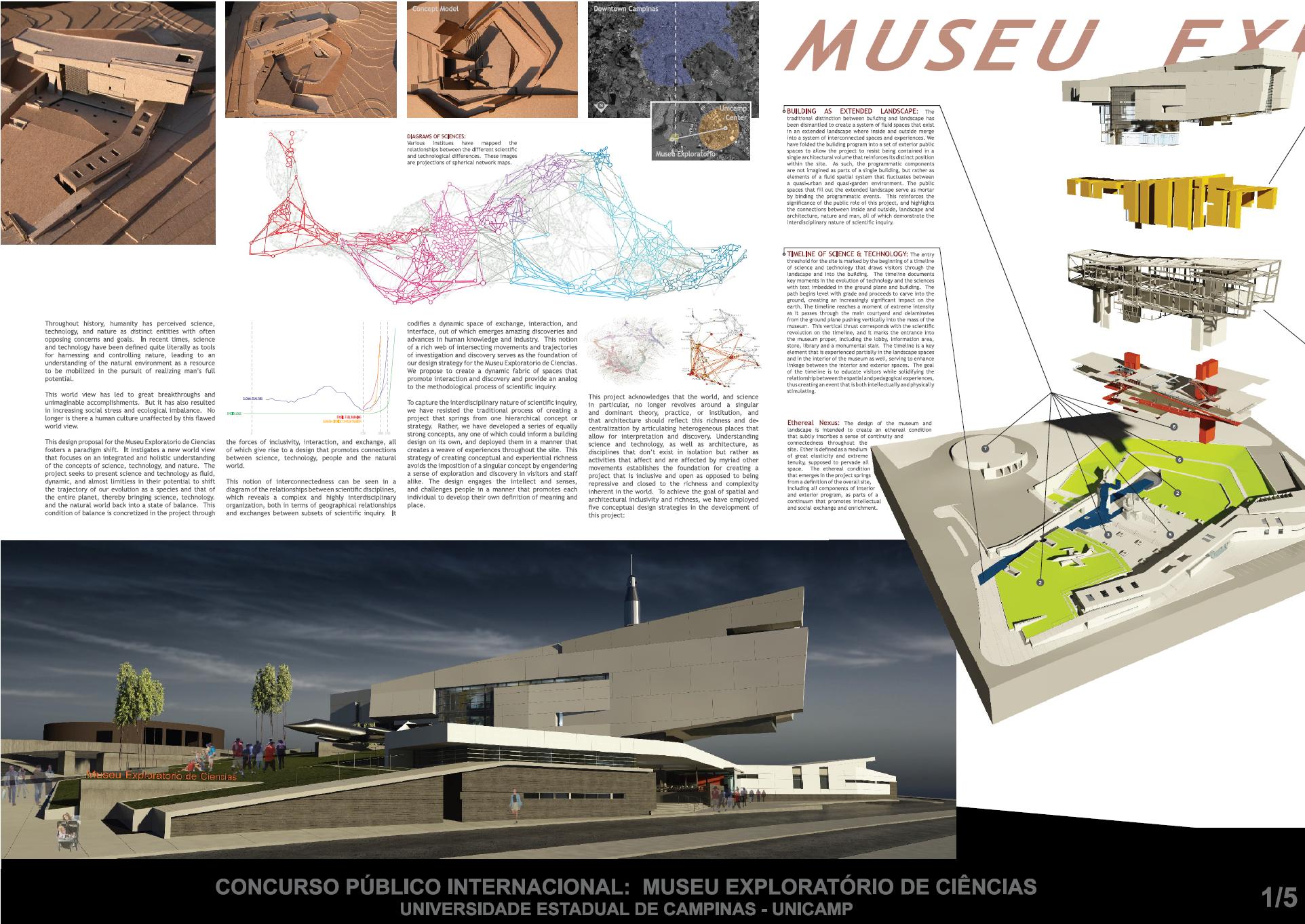 Veja abaixo o 3° colocado no Concurso Internacional para o Museu Exploratório de Ciências da UNICAMP, projeto do arquiteto Erik Warren Lewitt, dos Estados Unidos.