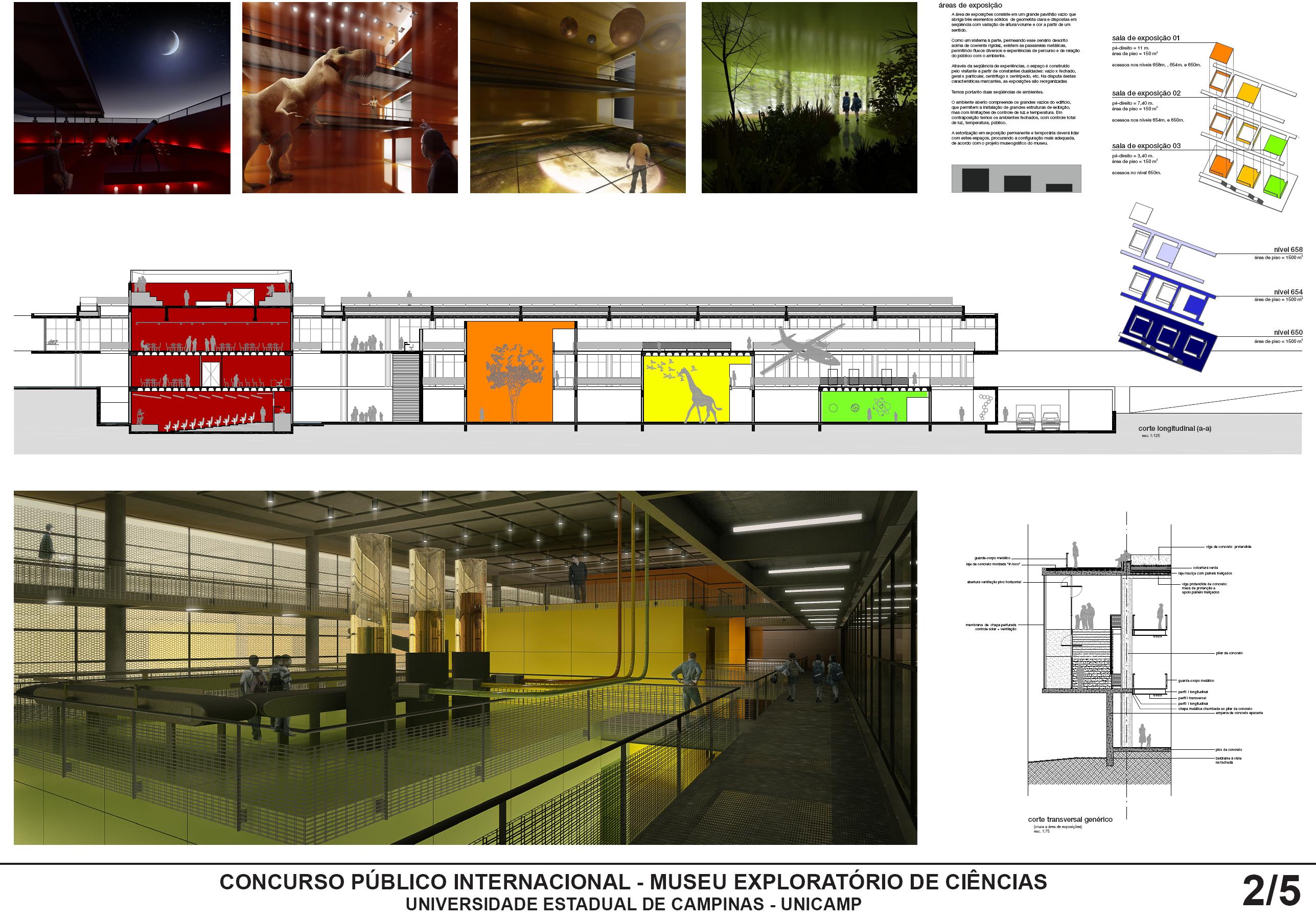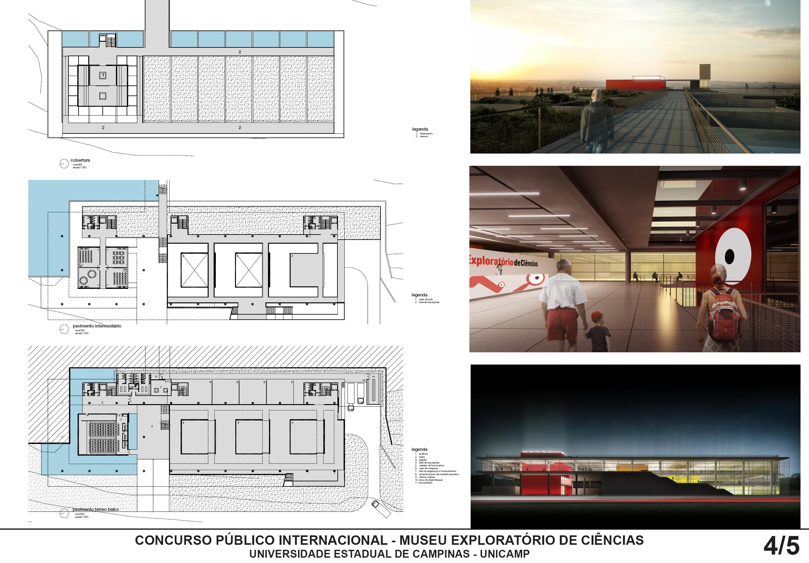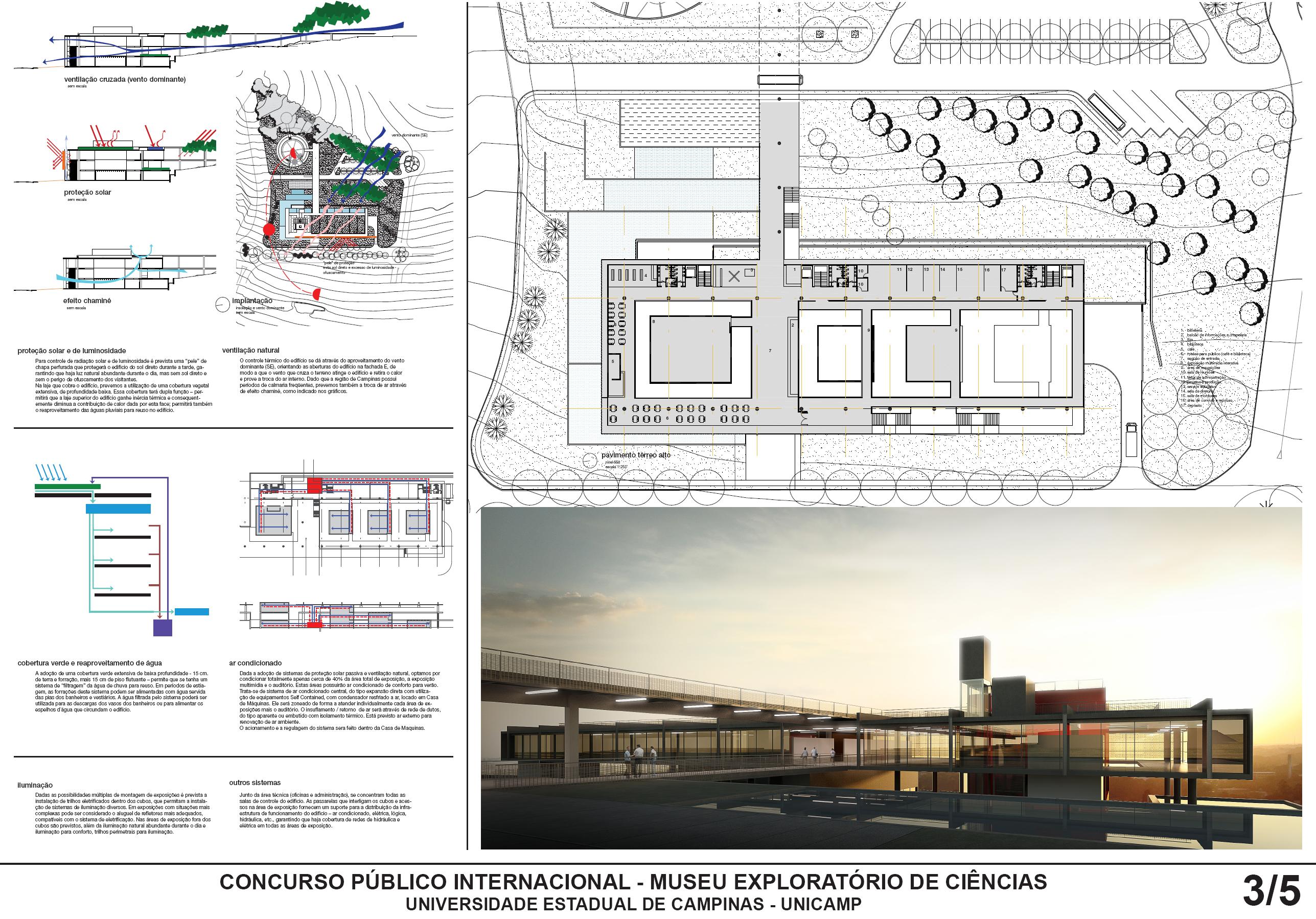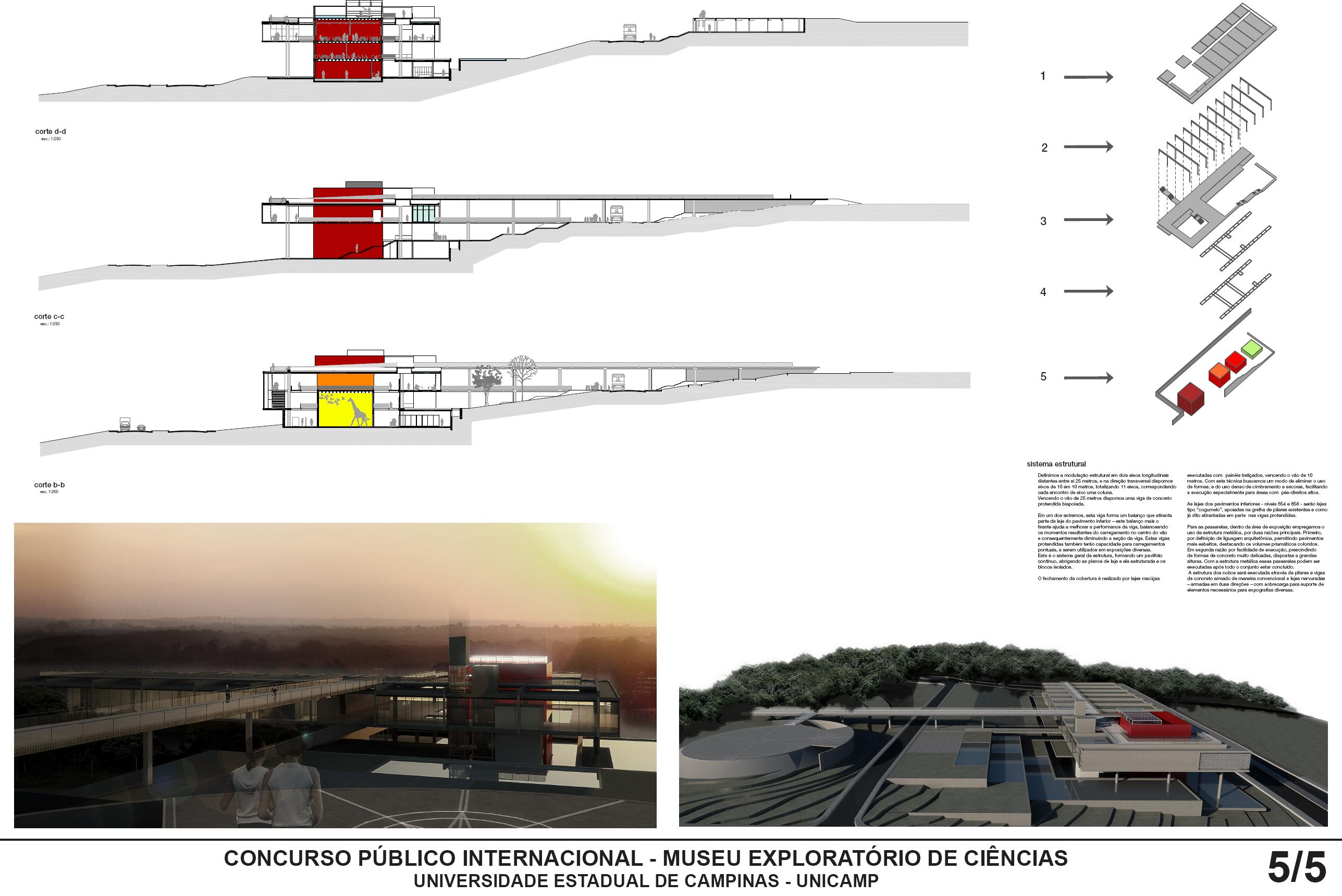 Veja abaixo o projeto da equipe composta por Alessandro Moreno Muzi, Hernani Carvalho Paiva e Luiz Marino Küller, finalista e menção honrosa no Concurso Internacional para o Museu Exploratório de Ciências da UNICAMP.