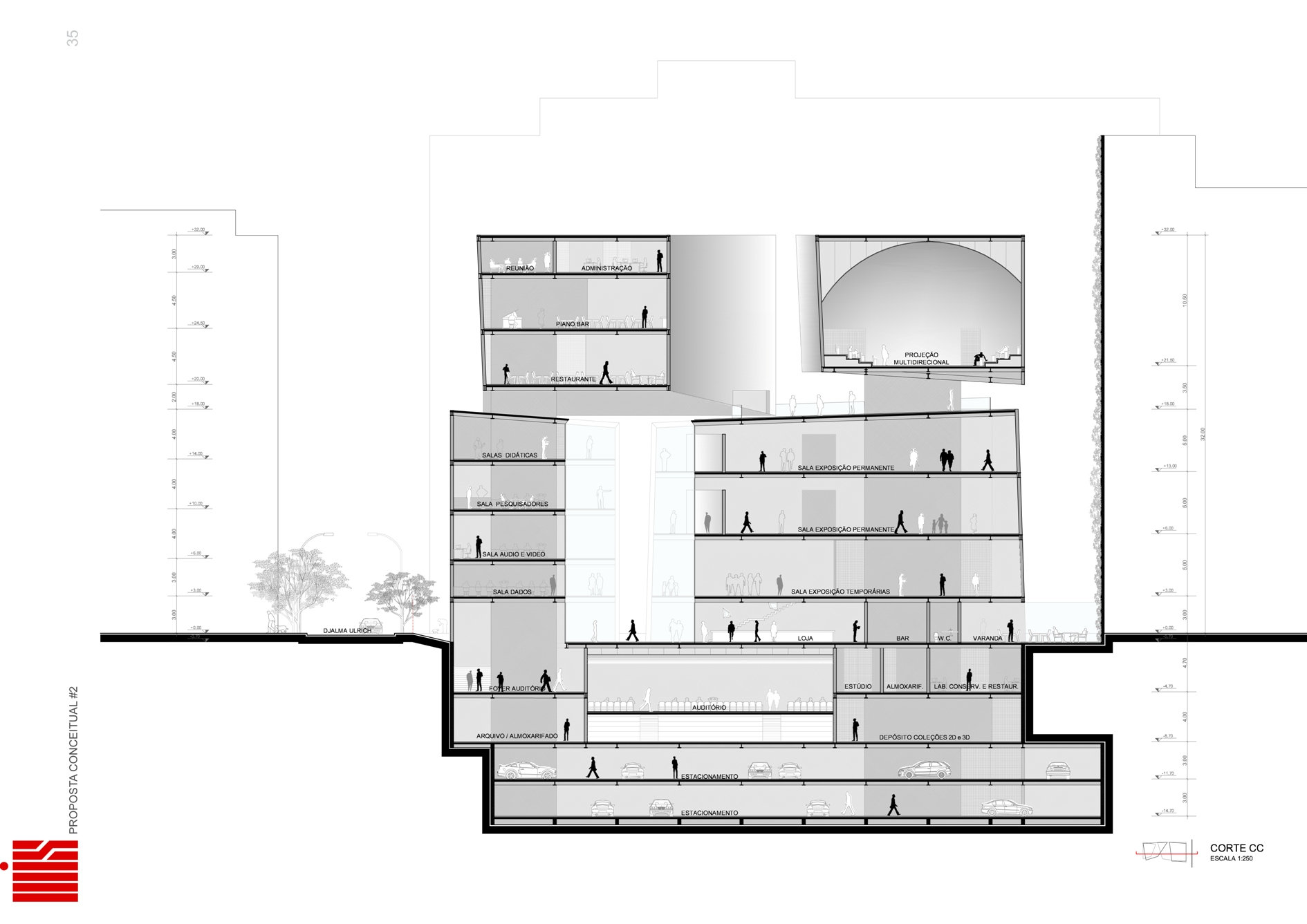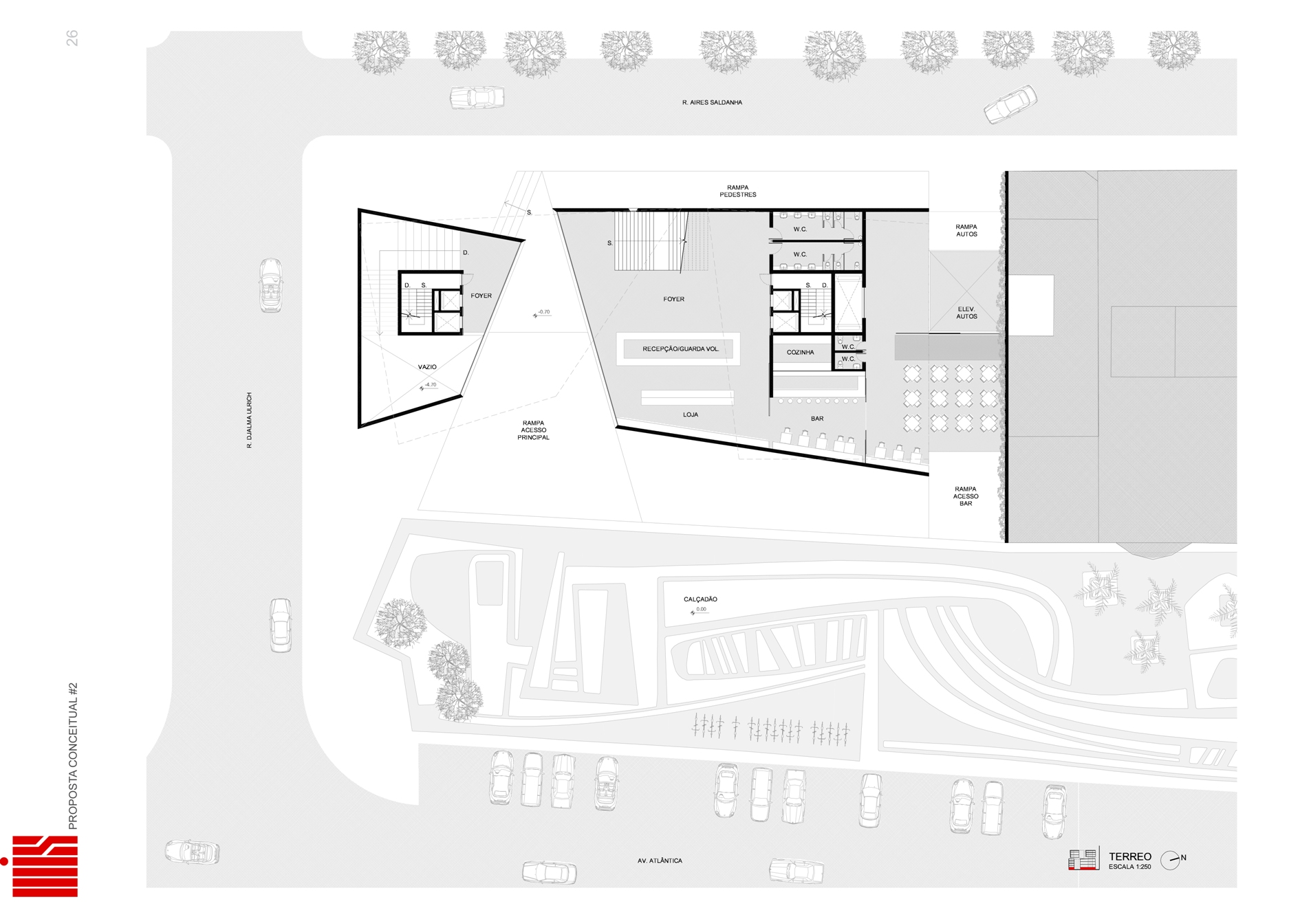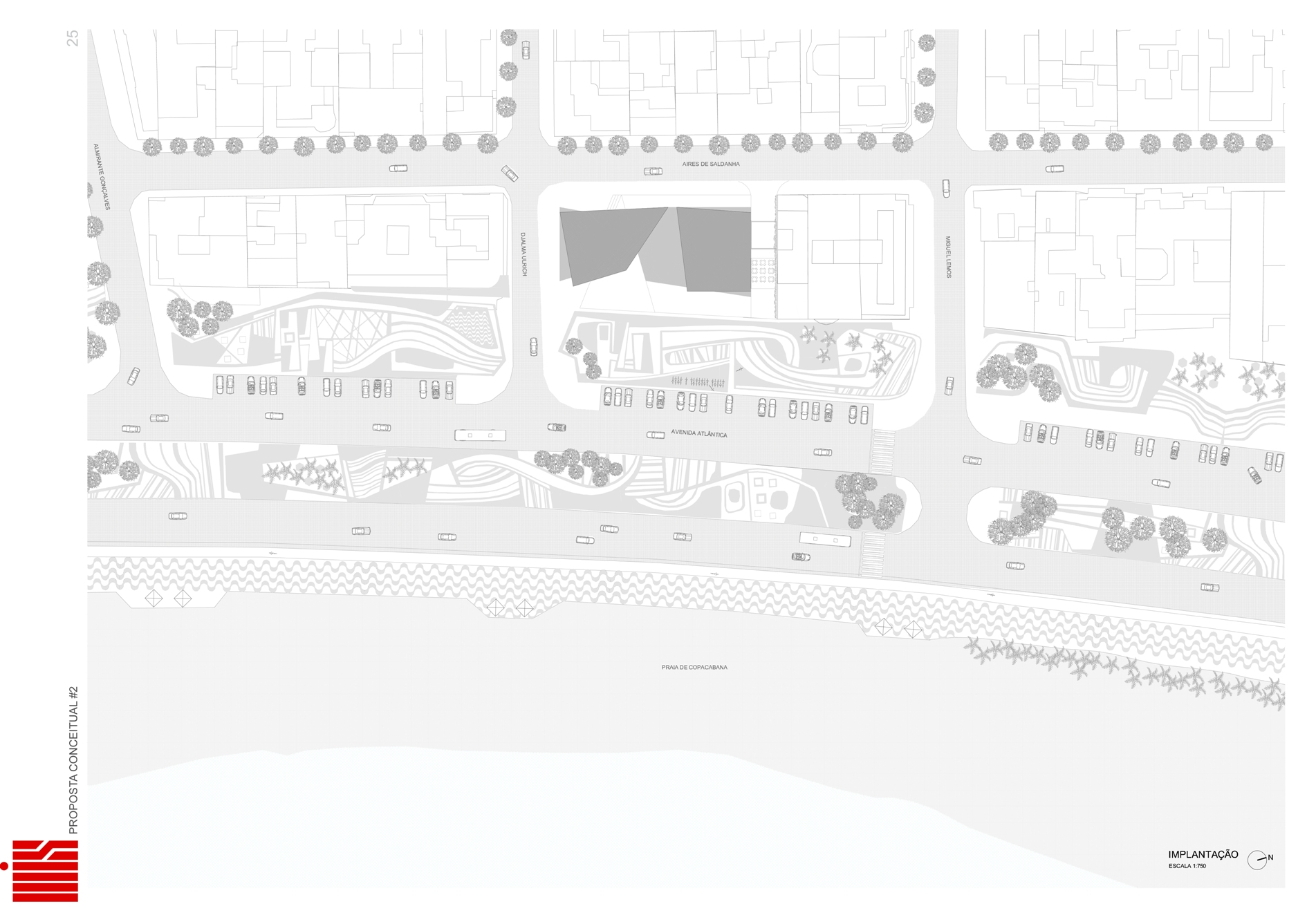 Com isso, pretendemos incrementar o fluxo tangente da linha da praia, do calçadão e do sistema viário, oferecendo-lhe novas possibilidades de permanência no local. Diversificar e reter, em síntese, observadores ou visitantes ocasionais e intencionais do museu, em decorrência de espacialidade instigante inserida em meio à cidade consolidada.