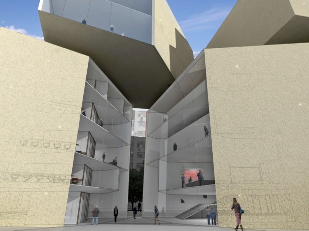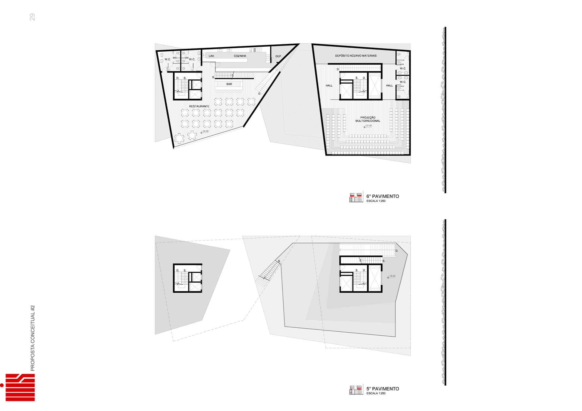 Claramente os Arquitetos mostraram o domínio conceitual sobre o concurso usando de fundamentos consistentes para explicar a poética arquitetônica que deveria ser proposta na ocasião. Acredito que sua falha maior foi no mal uso dos vazios internos e a tímida comunicação entre as partes do projeto. Os cortes não surpreendem, a circulação vertical se encolhe reprimida na borda. O conceito! Esse está evidente nas relações das volumetrias e na praça triangular no térreo as fachadas transparentes (voltadas pra dentro do lote) dá à entender uma tentativa de diálogo entre os blocos. A arquitetura contemporânea deve ser envolvente e envolvida, suas partes devem ser únicas e cúmplices, a arquitetura foi deixada no térreo.