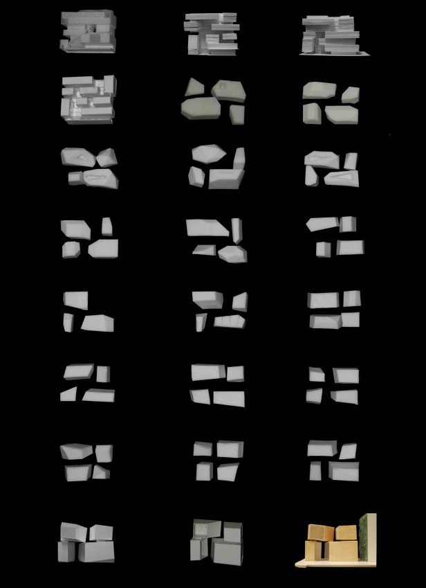 . Os empilhamos desalinhados a fim de multiplicar os espaços de transição que se oferecem à permanência e à contemplação;