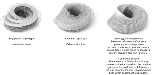 Segundo Bjarke Ingels, arquiteto responsável pelo projeto, “o projeto da Biblioteca Nacional combina quatro arquétipos universais relacionados ao tempo e ao espaço, em torno de um símbolo nacional: o círculo, a rotunda, o arco e o “yurt” (tipologia habitacional tradicional, em forma de tenda, característica de países da ásia central) são combinados em uma nova forma. A clareza do círculo, o pátio da rotunda, a idéia de passagem associada ao arco e a silhueta leve do yurt são combinados para criar um novo monumento nacional, ao mesmo tempo local e universal, contemporâneo e atemporal, ao mesmo tempo único e arquetípico”.