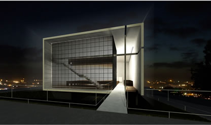 “Destaca-se pela solução adotada: um prisma que paira sobre o terreno conectado à rua por meio de uma passarela marcada pela cruz, estabelecendo uma ligação com o meio urbano mediada por uma membrana de fechamento cuidadosamente definida.”