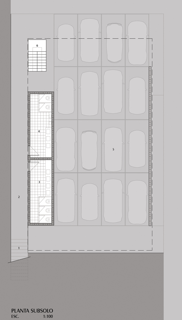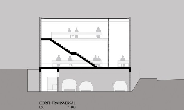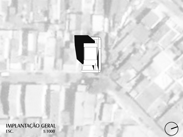 Surge assim, um monólito puro e simples, sem adorno algum, com a finalidade de reduzir ao máximo o custo da obra. Este monólito está localizado no nível térreo, ou seja, ao nível da rua, sendo seu estacionamento abaixo deste nível, o qual na verdade foi uma acomodação do terreno devido seu declive de aproximadamente 3 metros.