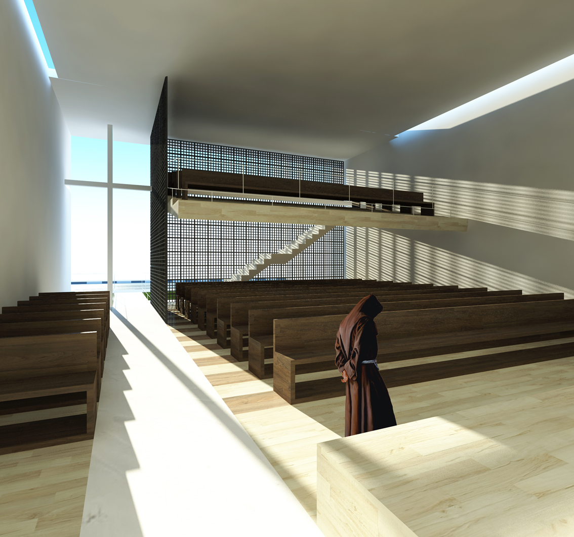 Inicialmente o cliente forneceu um programa para a capela, mas depois de analisar todo o conjunto, notou-se uma divergência de solicitações, então o programa foi totalmente redesenhado para encaixar-se as necessidades locais e econômica.