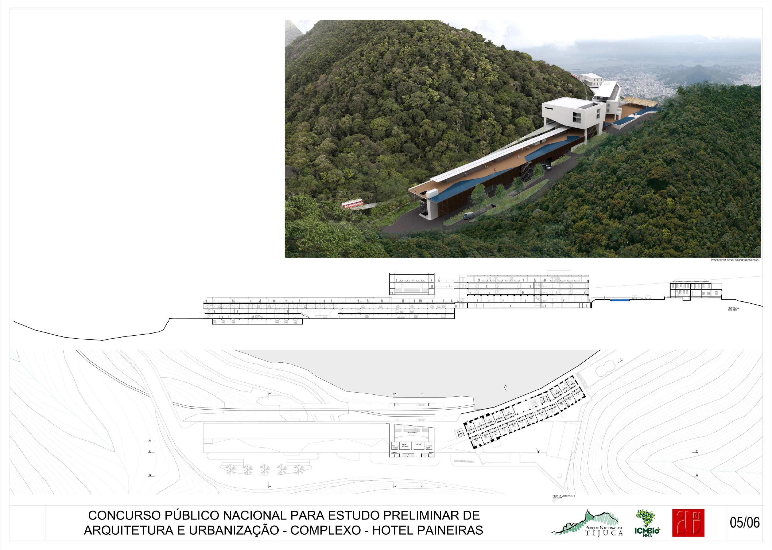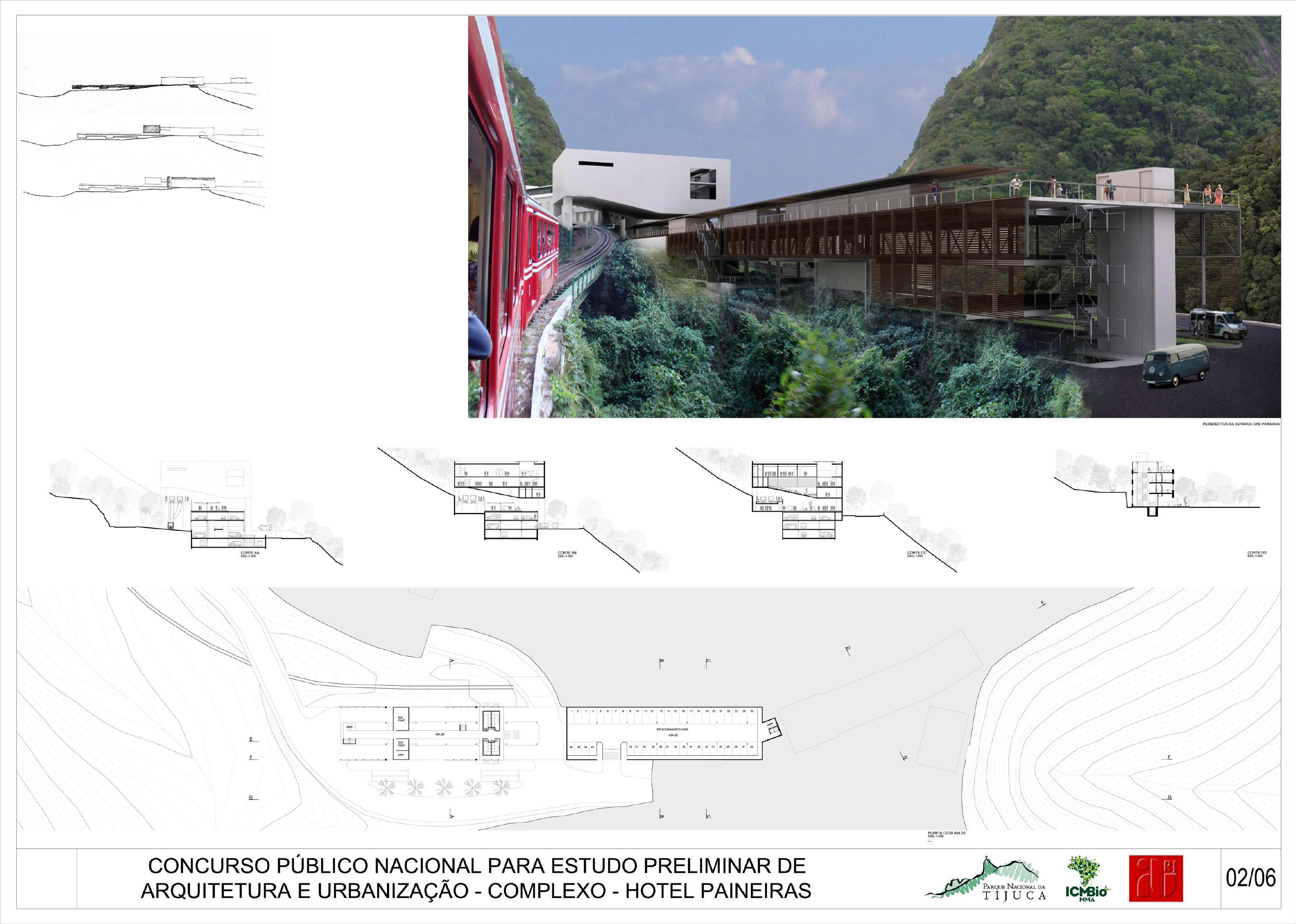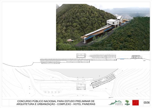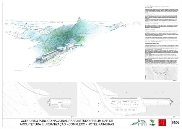 “O conjunto desenvolvido a partir de uma lamina/terraço que o unifica, apresenta boa qualidade plástica. A inserção do bloco transversal, proposto de forma inteligente sobre a estação do trem, valoriza a composição arquitetônica resultante e integra funcionalmente o conjunto. A solução apresentada minimiza a intervenção no terreno sem, no entanto, resolver de maneira desejável a circulação dos veículos no estacionamento coberto. Também não requalifica o espaço do hotel.” (transcrição do documento original)