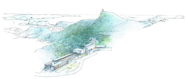 A privilegiada situação existente – natural e construída – fez-nos pensar um projeto capaz de assimilar o novo programa proposto sem causar grande impacto na paisagem. A partir da clara distinção entre o antigo e o novo, buscou-se dar nova imagem ao local por meio de uma proposta organizada em três atos: