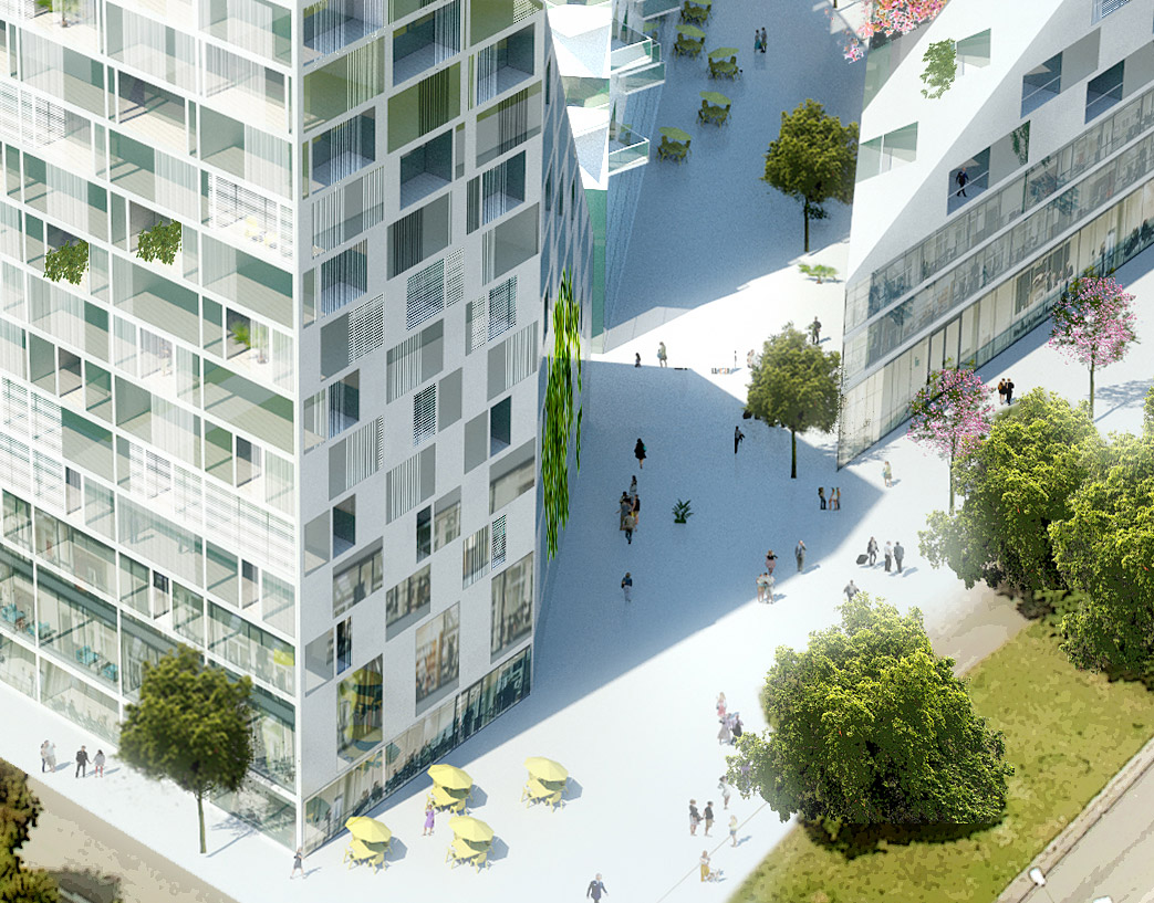 Concebido como uma “vila”, e não como um simples complexo esportivo, o projeto combina as edificações individuais a uma variedade de usos com espaços abertos e jardins públicos. As coberturas inclinadas e os volumes alternados dos edifícios reduz a escala do complexo em relação ao entorno. As ruas internas, animadas pelas funções públicas do programa, fazem referência aos centros medievais, abrigando todos os aspectos da vida humana – os prazeres da vida cotidiana, o trabalho e a diversão.