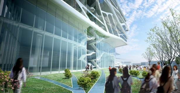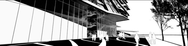Achei esse projeto muito sem graça. Pelo que pude notar nas imagens, é um edificio usual, estrutura com pilares e vigas de concreto e pele vidro. Ai colocaram essa “estrutura” por fora para tentar salvar, mas ela também não ficou legal.