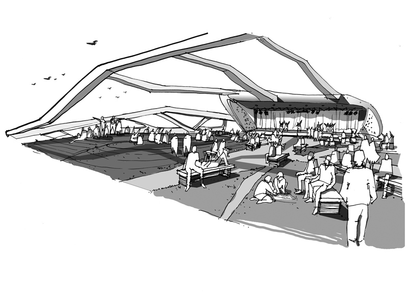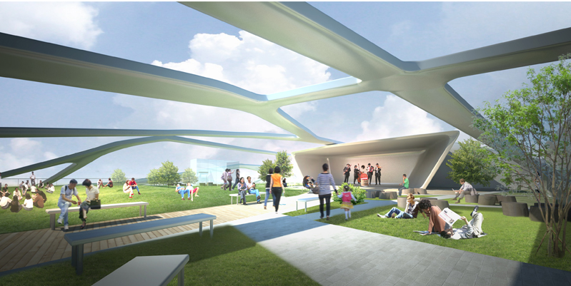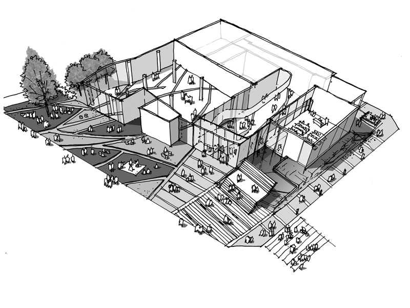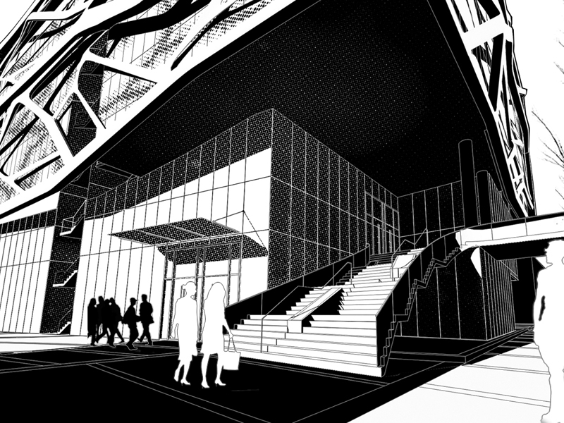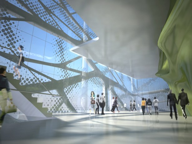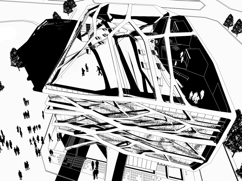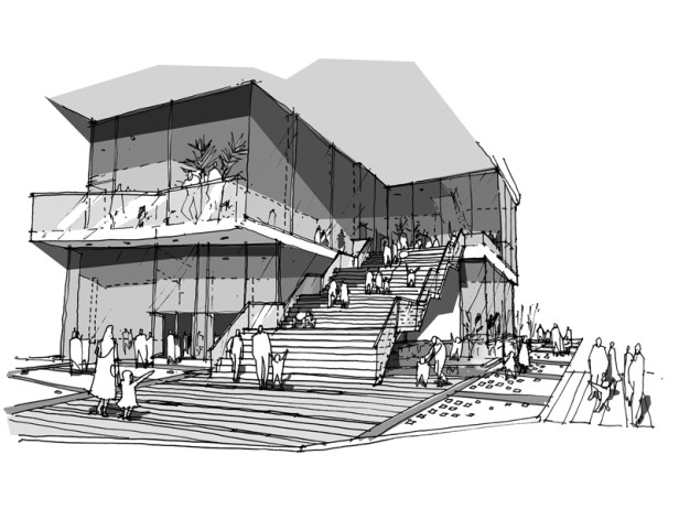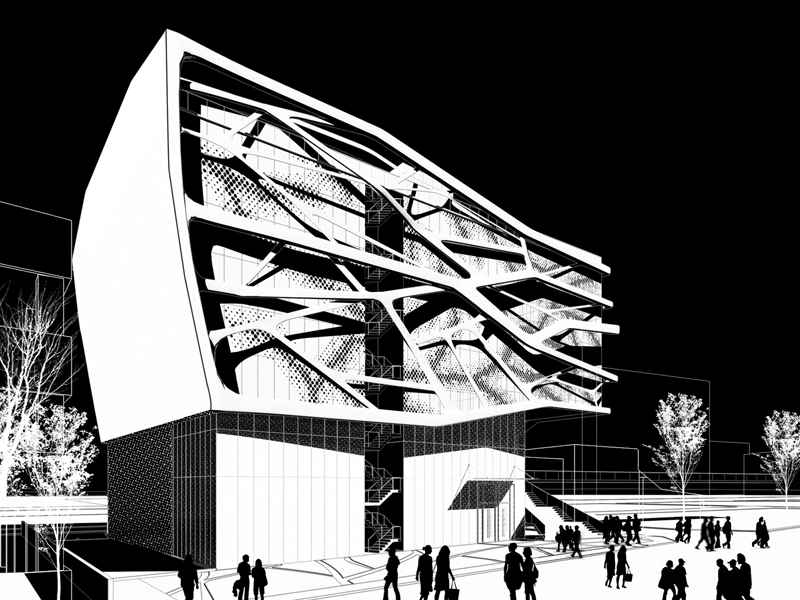 Sob o ponto de vista estético, segundo os arquitetos, “a estrutura surge do chão e se ramifica como galhos, se multiplica e envolve todo o edifício. Esse conceito estético e estrutural reforça ao mesmo tempo as raízes e a modernidade da cidade, ao mesmo tempo em que cria um jogo interessante de luz e sombra. Um ‘teatro flutuante’ inserido no interior do edifício permite uma série de aberturas para o exterior, estabelecendo contato visual com a cidade”.