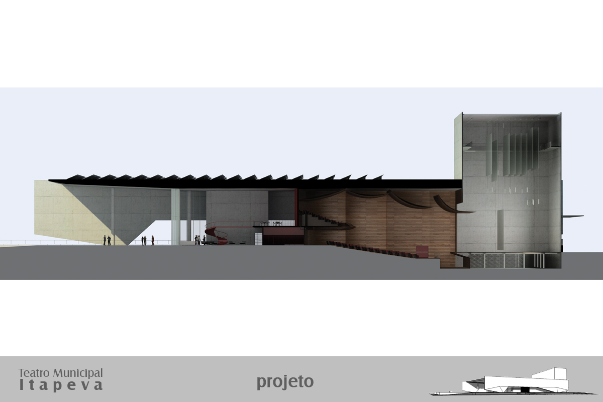 muito bonito! É clara a herança modernista, as vigas laterais lembram trabalhos de Pedro Paulo Saraiva e outros…. Parabéns! Agora é torcer para que realmente construam esse belo teatro!