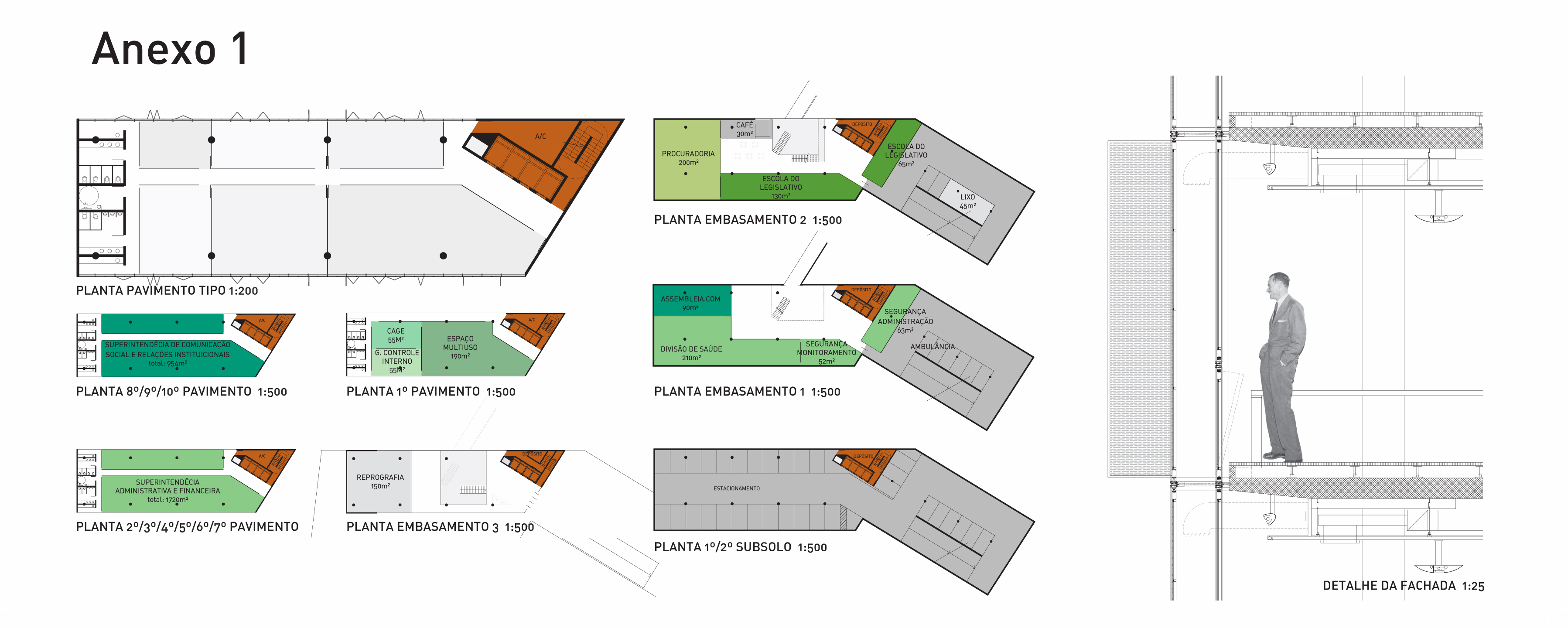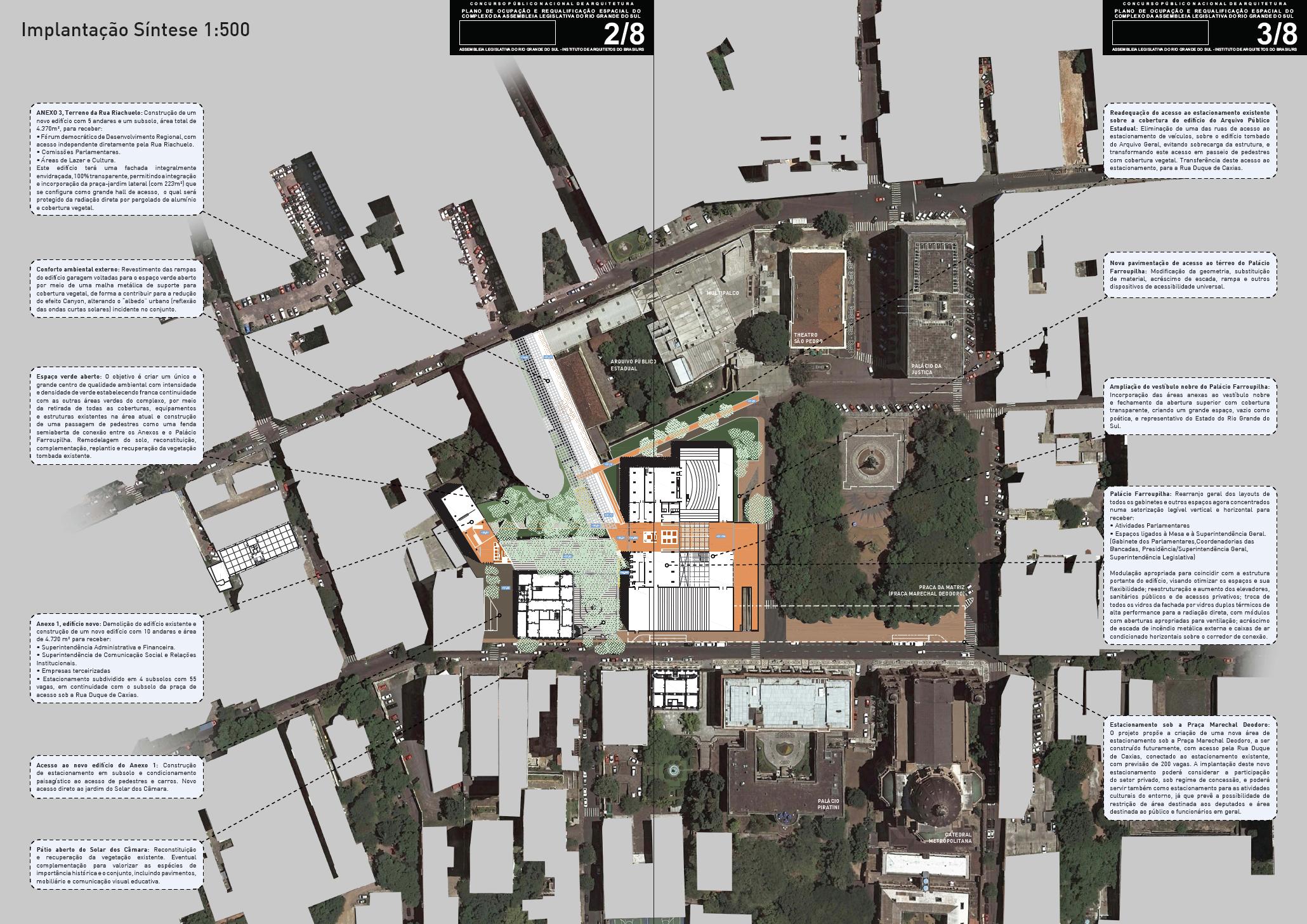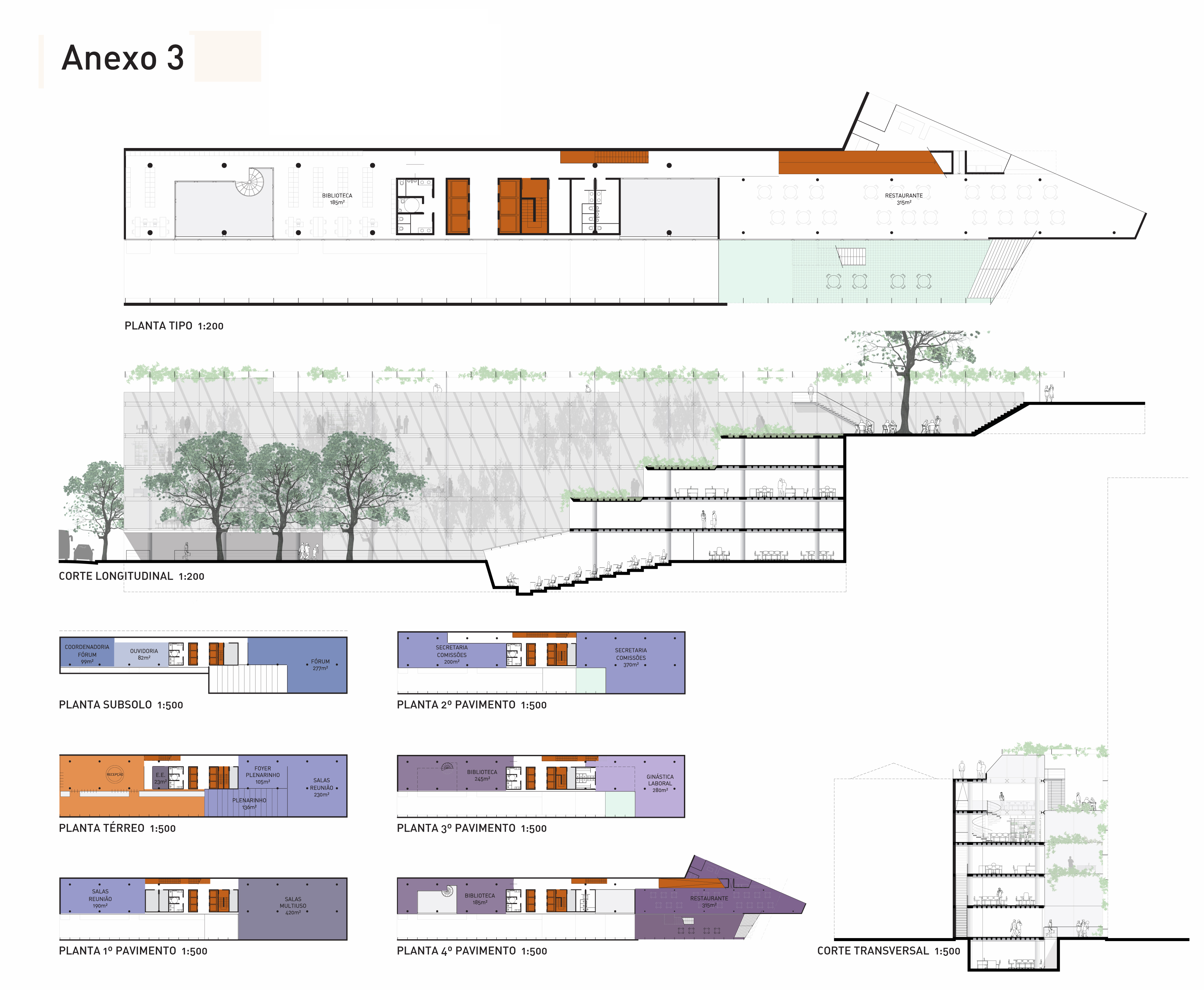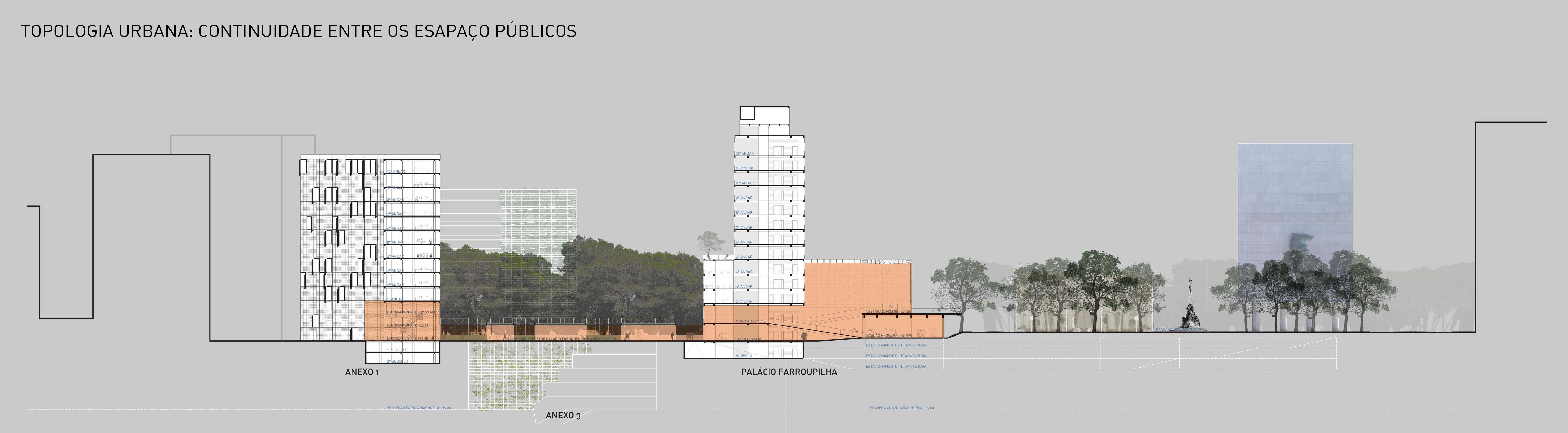 – Já o Anexo I será substituído por um edifício que, além de integrar a volumetria do entorno, irá definir uma nova frente (fachada), emoldurando o espaço verde aberto inserido na área central da intervenção.