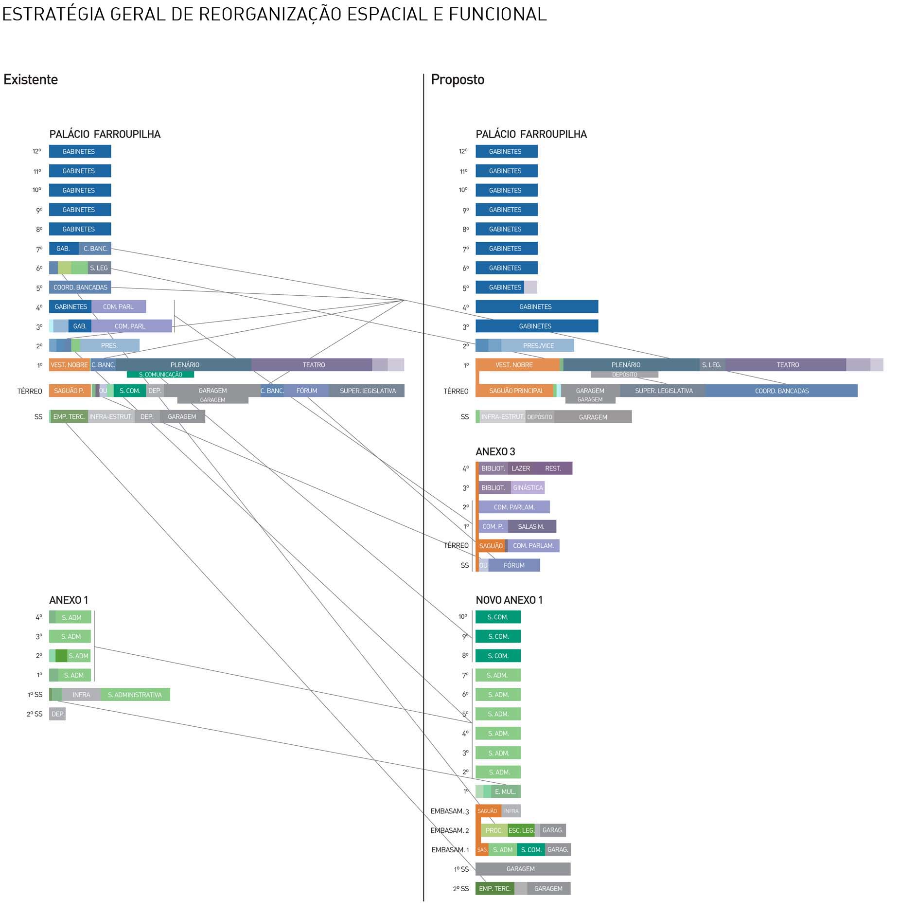 (Gabinete dos Parlamentares, Coordenadorias das Bancadas, Presidência/Superintendência Geral, Superintendência Legislativa)