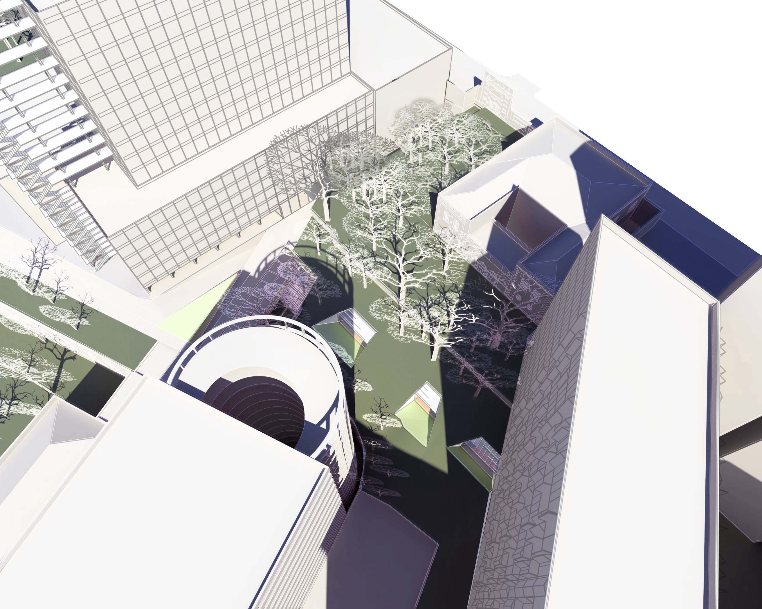 O objetivo é transformar este grande parque interno em um “capão de mato urbano” com ramificações em distintos níveis – no Jardim do Solar, no terraço do 5º andar do Palácio, no pátio bioclimático do Anexo III, por meio da retirada de todas as coberturas, pavimentos e equipamentos que ocupam a área atualmente, apresentando-se com uma escala adequada e potente no conjunto, como uma grande massa arbórea, sobre um solo único e contínuo, literalmente e virtualmente.