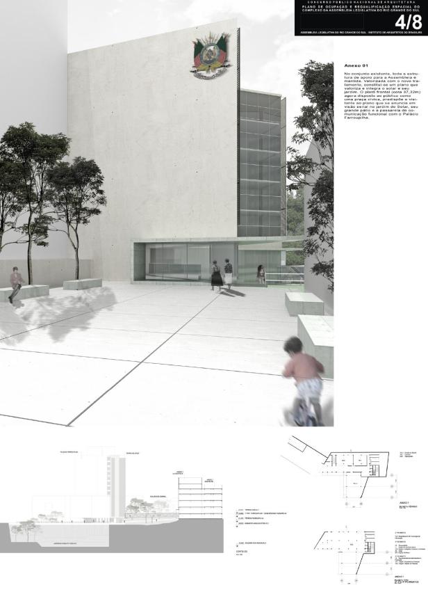 O Anexo 01 é totalmente requalificado através da praça cívica e da revitalização de sua fachada, surgindo como plano de valorização do acesso e do patrimônio presentes no memorial do Legislativo e Solar dos Câmara.