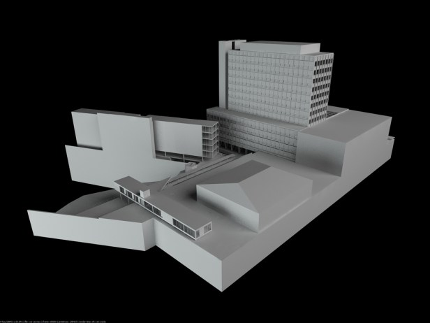 Para o terreno da rua Riachuelo foi proposto um edifício que abriga algumas funções remanejadas do Farroupilha e todo o programa que outrora estava no anexo I. Isso permite que se tenha uma maior densidade no complexo ao utilizar todo o potencial construtivo deste terreno.