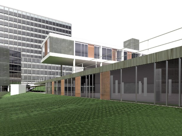 Para melhoria da circulação vertical foi proposta um novo núcleo, que passa por todos os pavimentos, com dois elevadores, uma caixa de escada, serviços e um shaft para passagem de novas instalações.