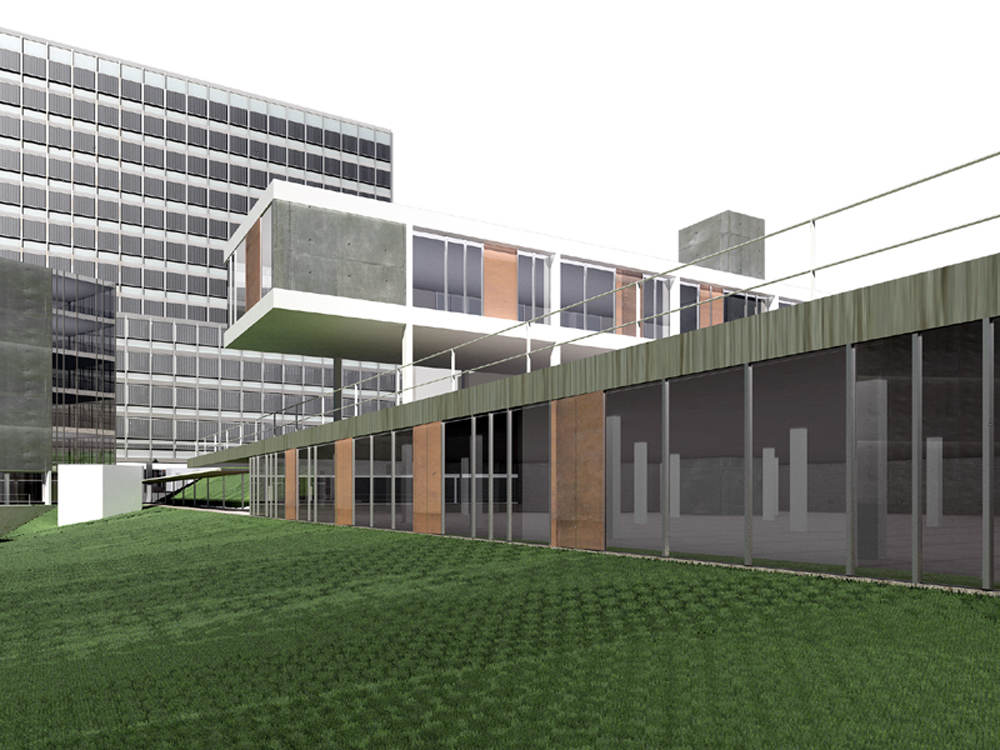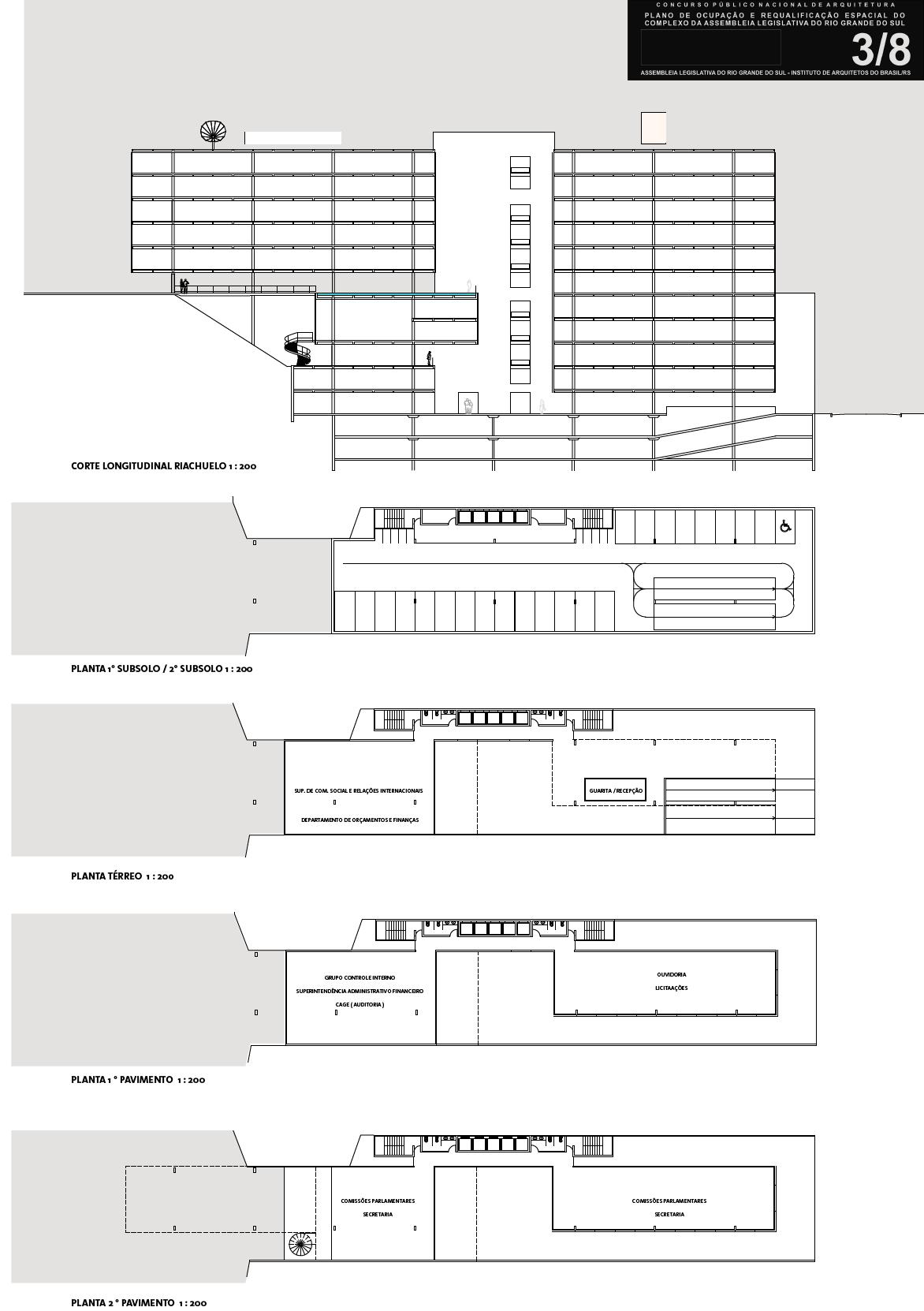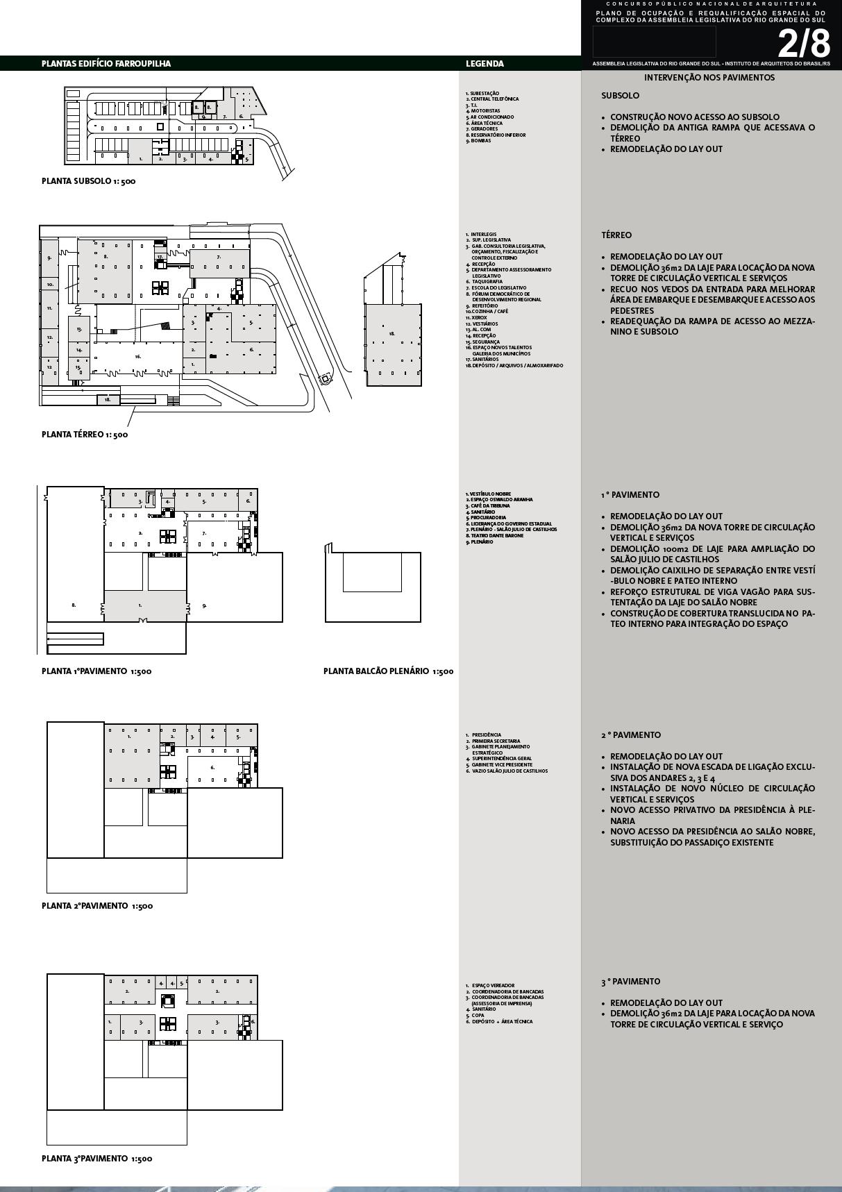 O projeto para o Plano de Ocupação e Requalificação Espacial do Complexo Assembleia Legislativa do Rio Grande do Sul estrutura-se em um eixo central que requalifica e organiza o espaço aberto no interior da quadra com as edificações adjacentes.