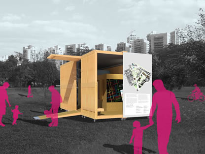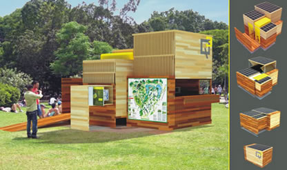 Como parte da 8ª BIA – Bienal Internacional de Arquitetura de São Paulo foi realizada a EXPO ESTUDANTES – Exposição Internacional de Projetos de Estudantes de Arquitetura e Urbanismo onde os participantes expositores foram convocados a apresentar idéias para um quiosque de serviços urbanos para usuários de parques públicos em São Paulo.