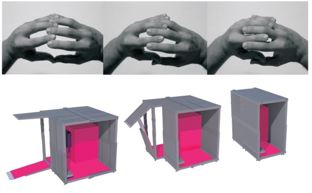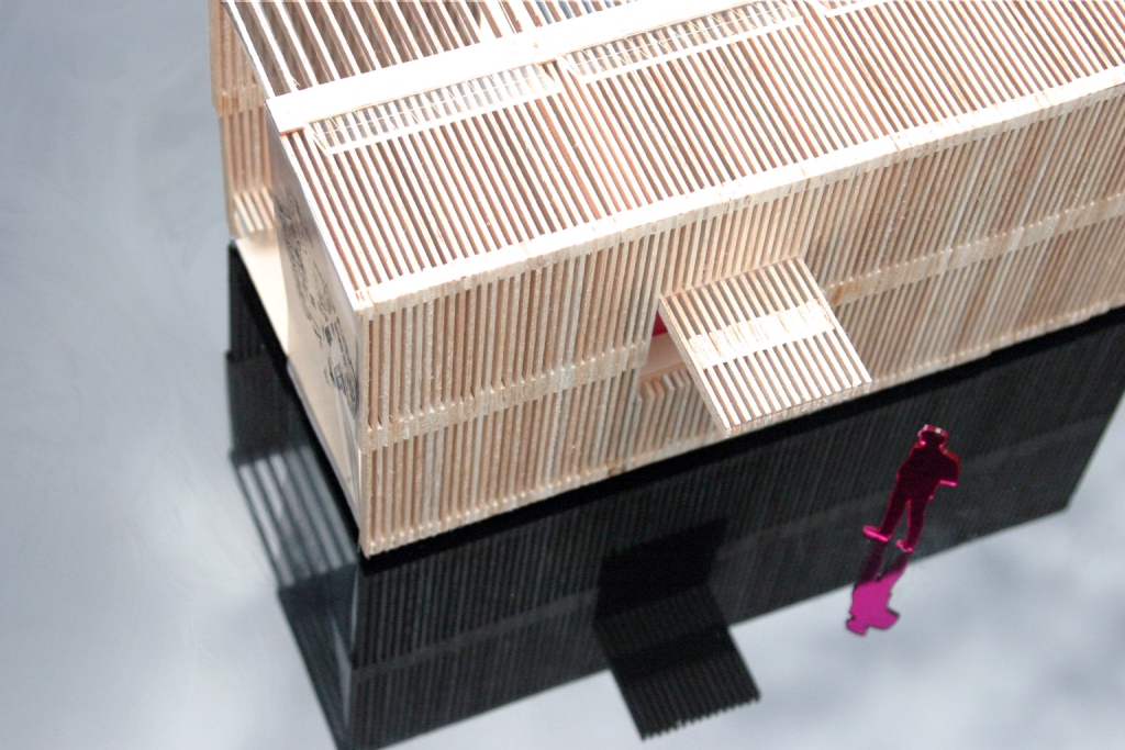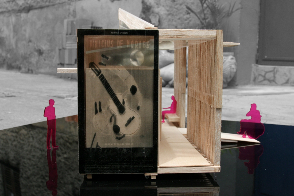 O ponto de partida do projeto é o seu método construtivo. Elaborou-se um pensamento à escala do detalhe, distinguindo-o como um módulo a ser repetido. O detalhe torna-se o elemento norteador do projeto: as variadas possibilidades de encaixe permitem a criação de novas formas que, por sua vez, dão margem a diferentes apropriações pelo indivíduo. Sendo assim, o sistema de encaixes emerge como uma metonímia, um elemento de base que se manifestará no objeto com um todo.