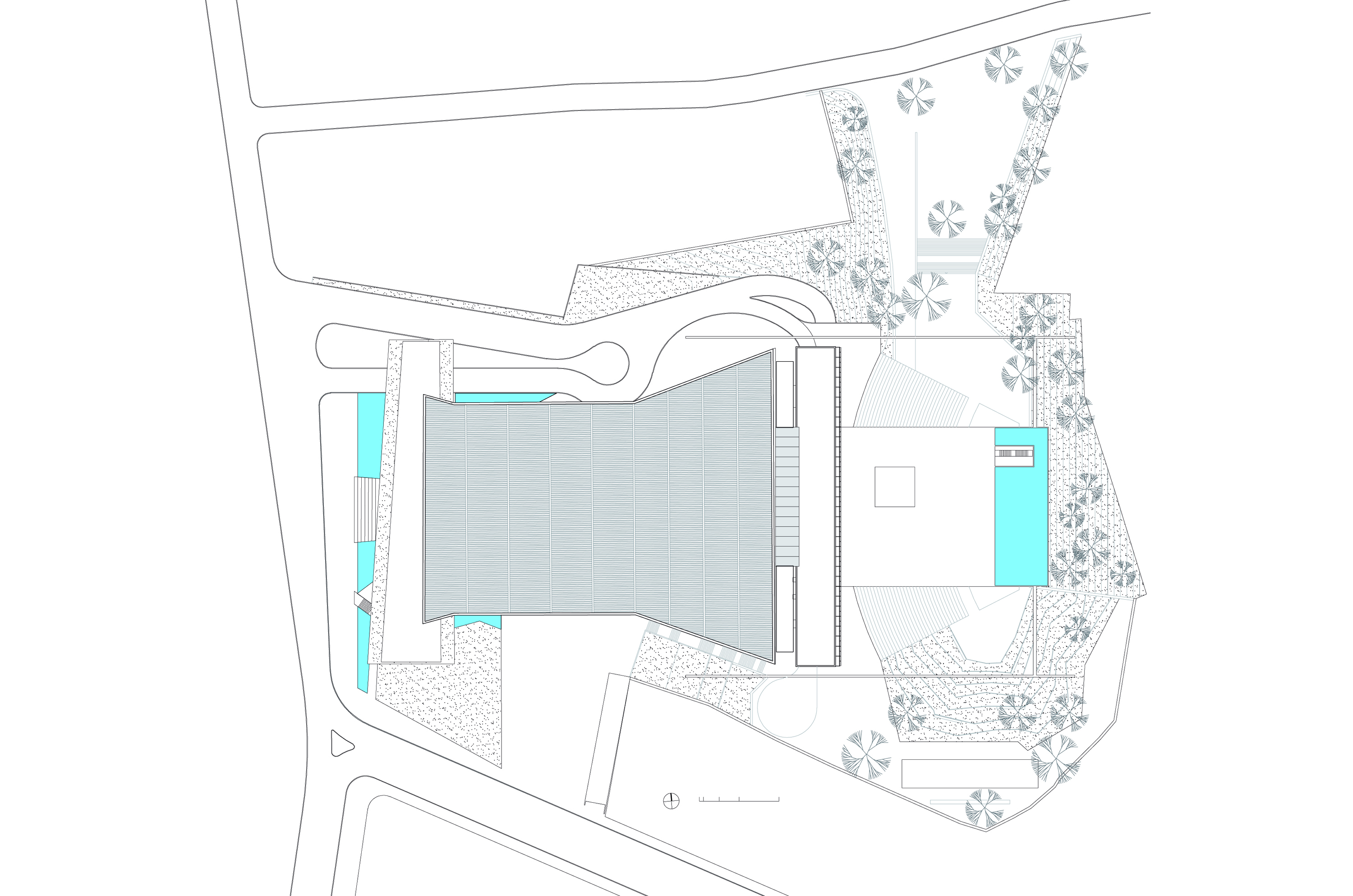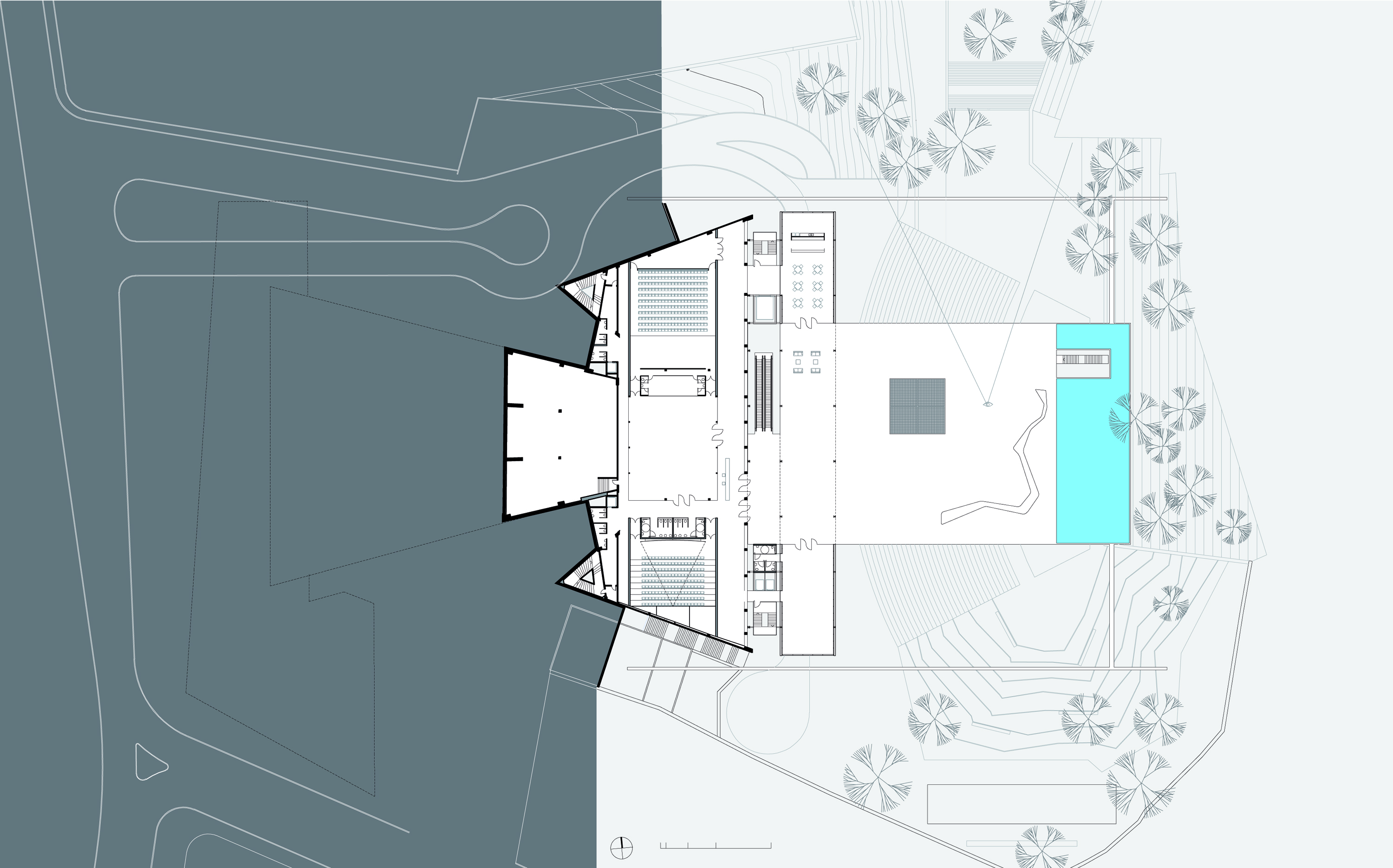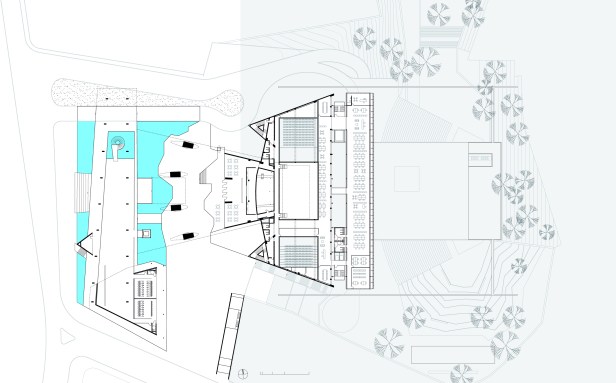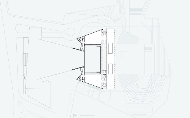 Este espaço – que poderia se chamar Espaço Bina Fonyat – se liga diretamente a nova sala de concerto, cinema, memorial além da galeria de recepção e acesso ao conjunto. Esta servida por uma cafeteria além de um inusitado restaurante, sob o espelho d’água, que oferece um vista singular do anfiteatro externo.