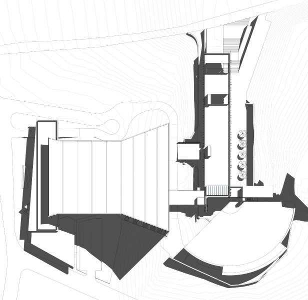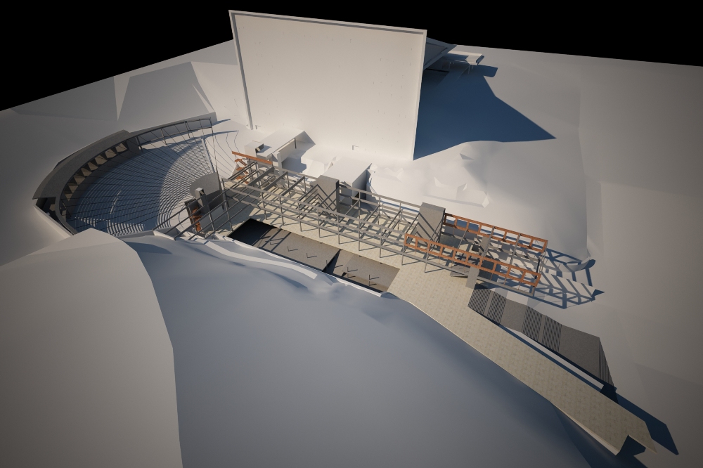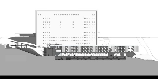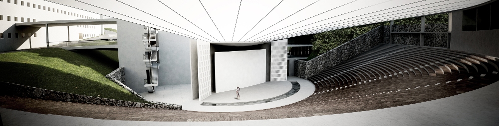 Nesse sentido, propõe-se a construção desse novo edifício de modo a organizar os fluxos de acesso aos espaços de espetáculo, qualificando assim os percursos dos usuários desde a entrada da Ladeira da Fonte até o pátio que serve de foyer para a Concha Acústica.