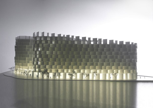 “Considerando que o terreno induz à criação de um portal de acesso na parte leste, em direção à área urbana no entorno da área sagrada, o projeto propõe uma edificação que protege as residências e os espaços públicos do barulho proveniente do ‘boulevard’ principal e ao mesmo tempo abrindo esses espaços para a área religiosa.”