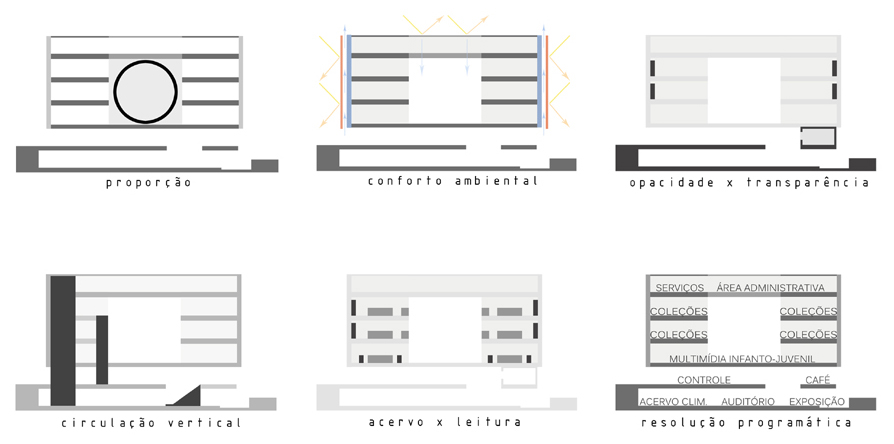 A partir destas premissas, surge um aparente antagonismo: como criar um edifício que tenha uma relação “aberta” com o espaço público, a malha urbana, mas que ao mesmo tempo, como biblioteca, tem como característica intrínseca o fato de ser um espaço que deve privilegiar a introspecção?