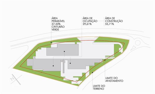 A edificação foi pensada obedecendo os limites estabelecidos pela legislação urbana e pelo programa, que são: