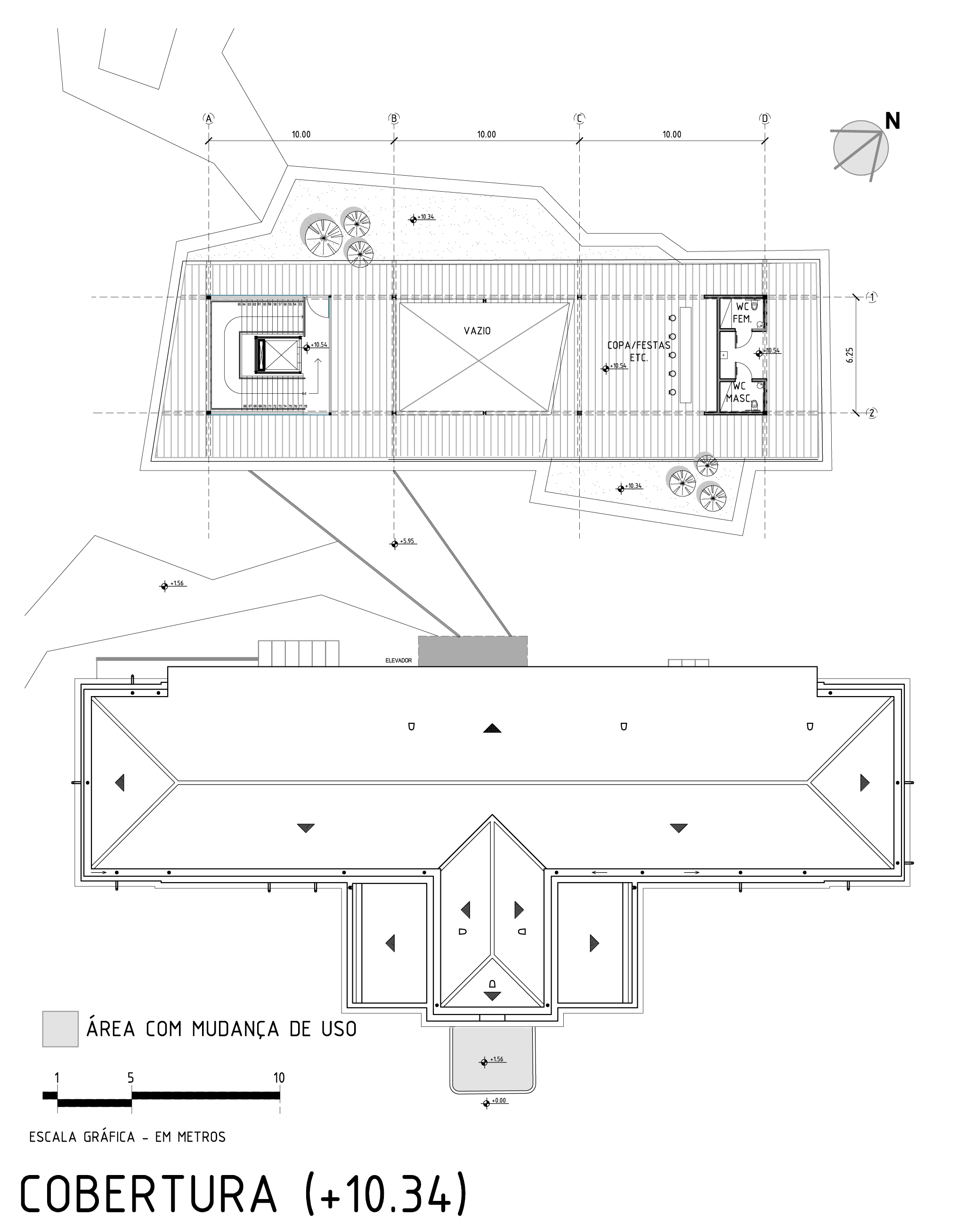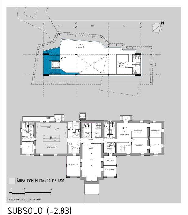 1.3 Novos lugares: cada edifício é um novo evento que explora ao máximo o significado do meio ambiente onde se insere. O edifício das exposições de longa duração foi concebido para ser uma intervenção suave junto ao edifício histórico, tendo como principal desígnio valorizá-lo através das estratégicas aberturas a ele voltadas e certa simpliciadade no trato da forma. O lado oposto absorve adaptações geométricas mais instáveis adaptando-se à natureza – e limites – como um organismo vivo que evolui sofrendo mutações.