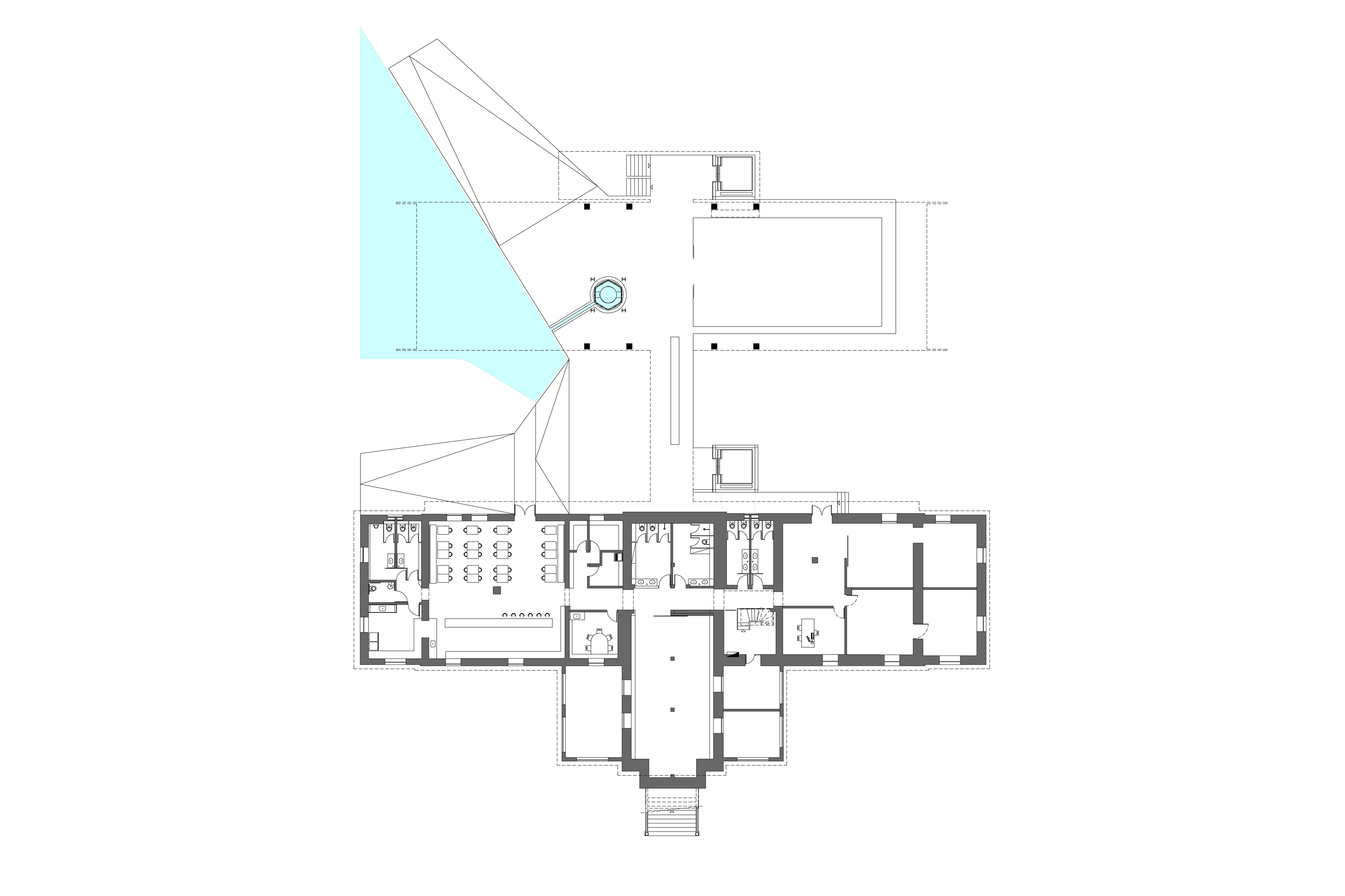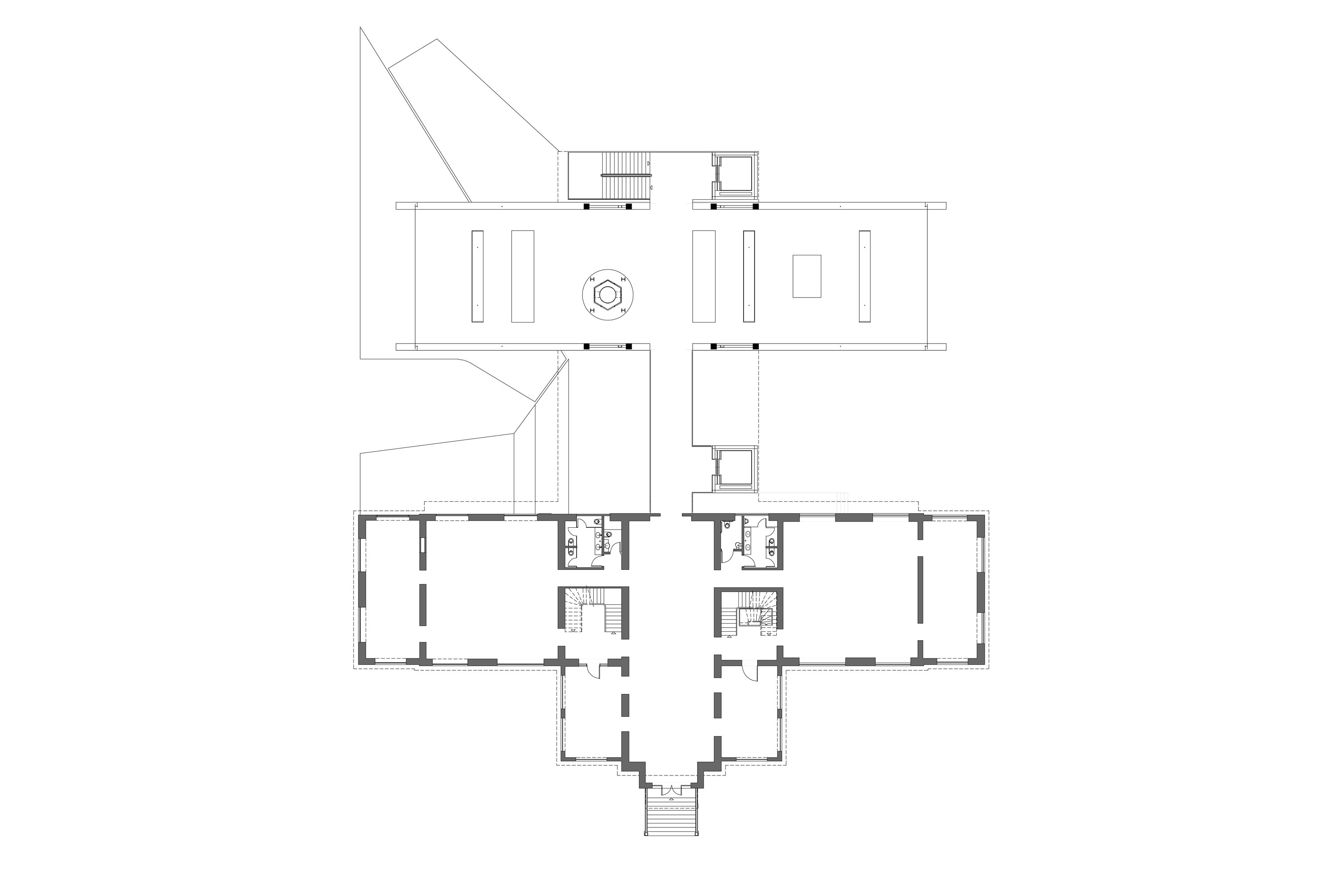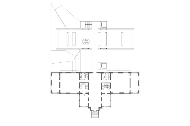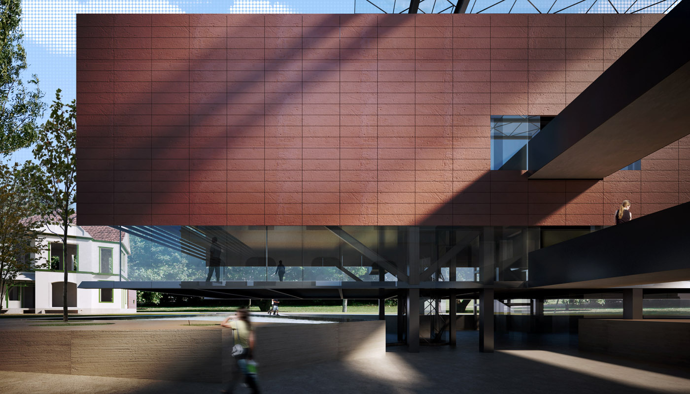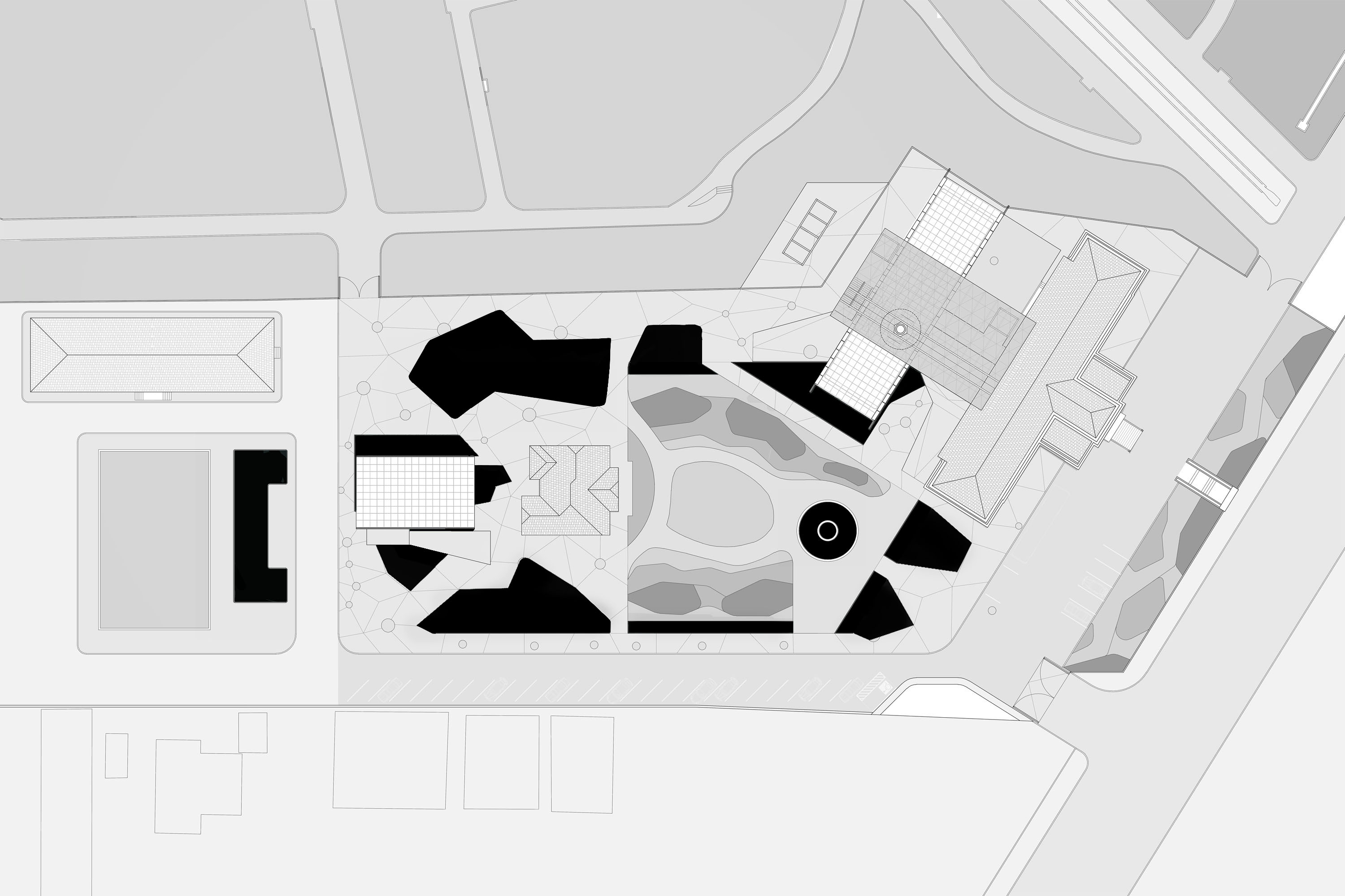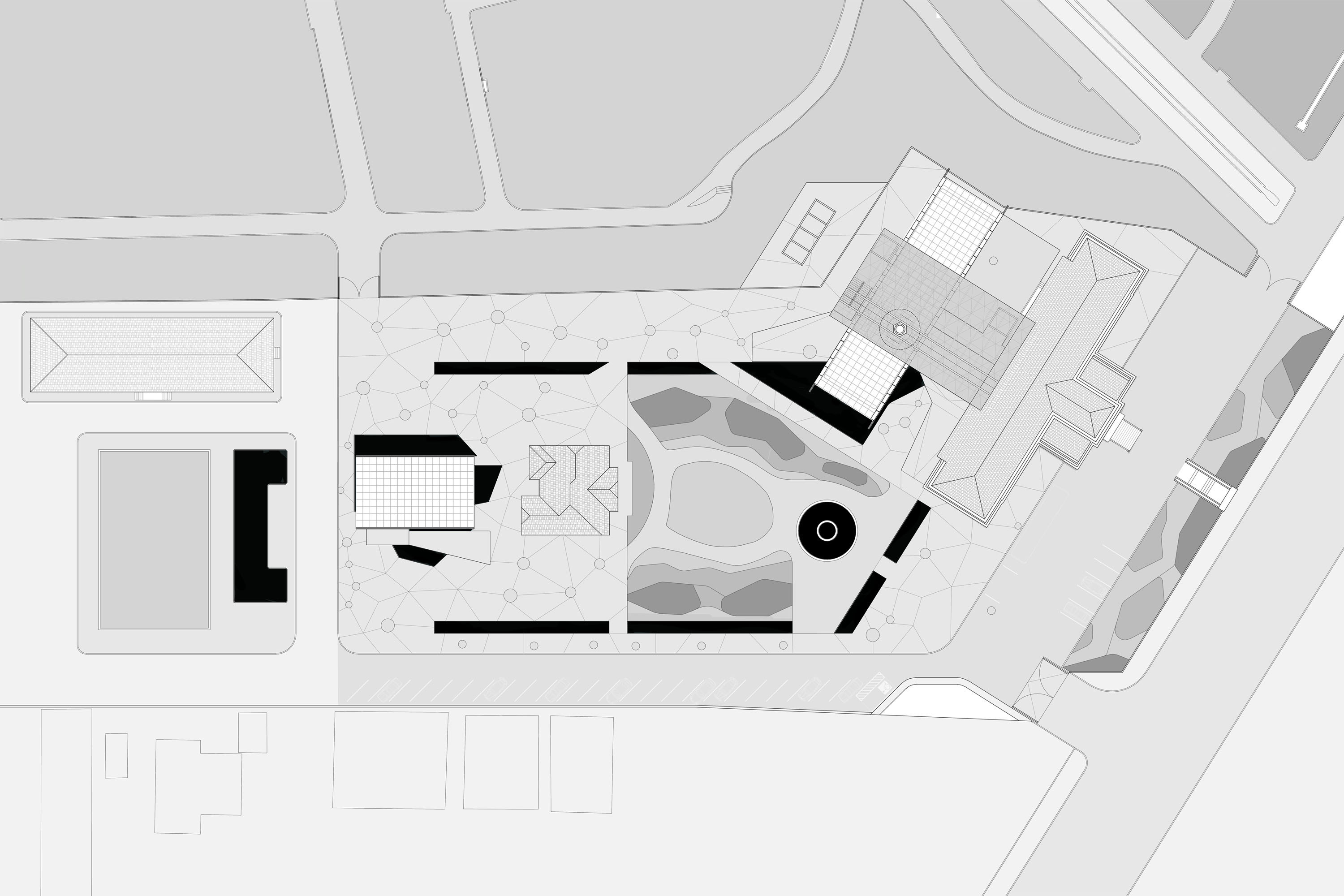 Essa integração foi obtida com a configuração de uma grande esplanada, que abre a possibilidades de usos diversos, recreativas ou pedagógicas, além da função de conexão pedestre entre os edifícios. Subvertendo o modelo do jardim com caminhos estreitos abertos entre a mata, toda esta área sob as árvores existentes não distingue percursos e permite apropriações. Valorizamos entretanto o traçado original do jardim junto à casa de Pacheco Leão ao evidenciar as diferenças formais e de usos dos espaços abertos integrantes do conjunto.