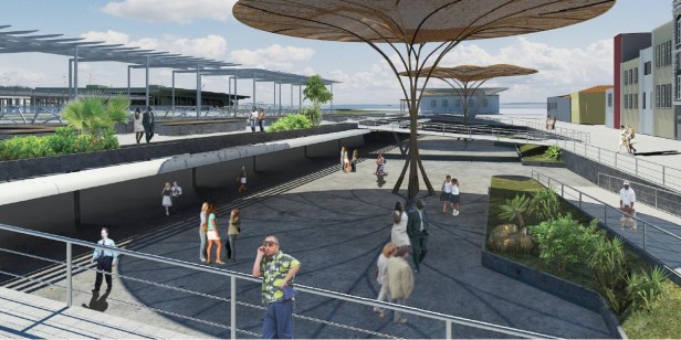 • Priorizar o transporte de massa frente ao automóvel integrando as escalas urbana, intermunicipal e regional através de um conjunto de equipamentos através de um eixo circulátório de pedestres, que articulam as modalidades terrestre e marítima.