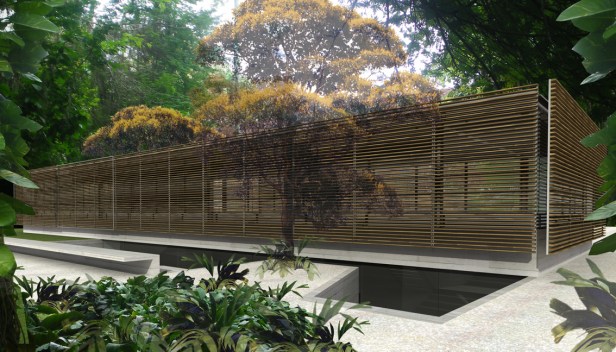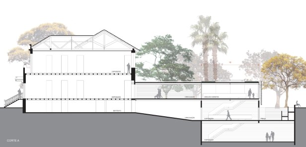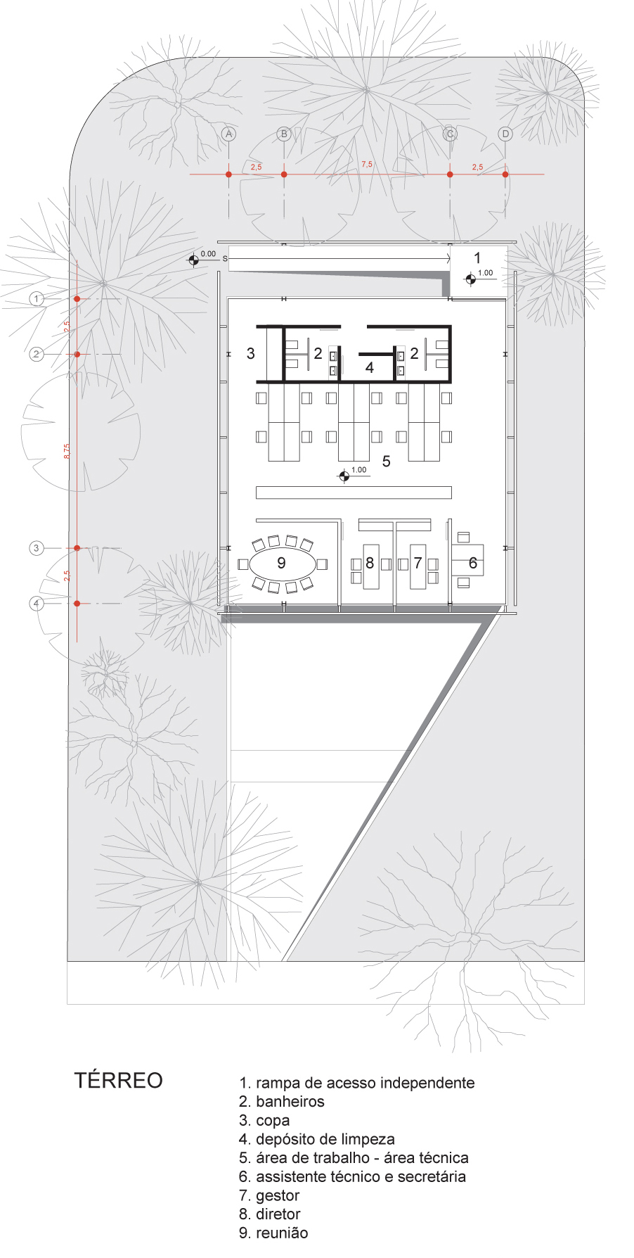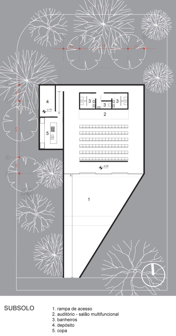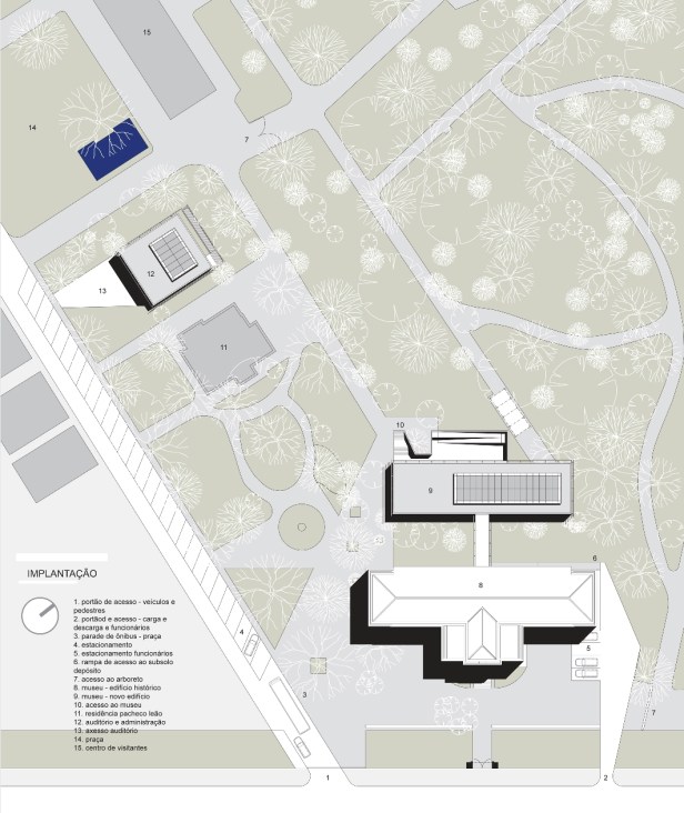 Por seu inegável valor patrimonial, o Arboreto foi tratado como o elemento estruturador da proposta arquitetônica fornecendo os principais condicionantes para a implantação dos novos edifícios. A paisagem natural é o grande protagonista do território tornando-se suporte ativo para o partido adotado. A arquitetura proposta não atua como imposição icônica. O projeto, pelo contrário, insere-se silenciosamente na paisagem estabelecendo diálogo entre a mata e conjunto construído.