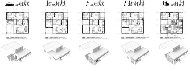 A casa foi pensada para proporcionar e se adaptar a variados tipos de disposições sem perder suas principais características de usos, acessibilidade e expansão. Pode ser utilizada isolada no lote, geminada duas a duas, ou mesmo em fita, ou ainda em outras configurações mais complexas.